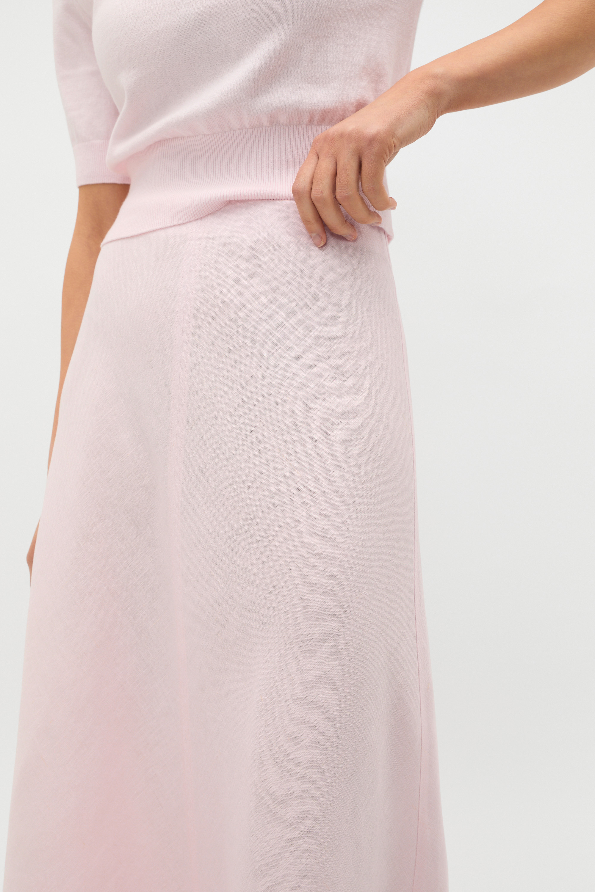 Simple and chic, this linen skirt adds a sophisticated touch to your day-to-day wardrobe. Crafted in premium linen, it features a fixed waistband, a front seam detail and a flowing A-line shape falling to a maxi length. Pair with the coordinating linen pieces for effortless tonal styling.