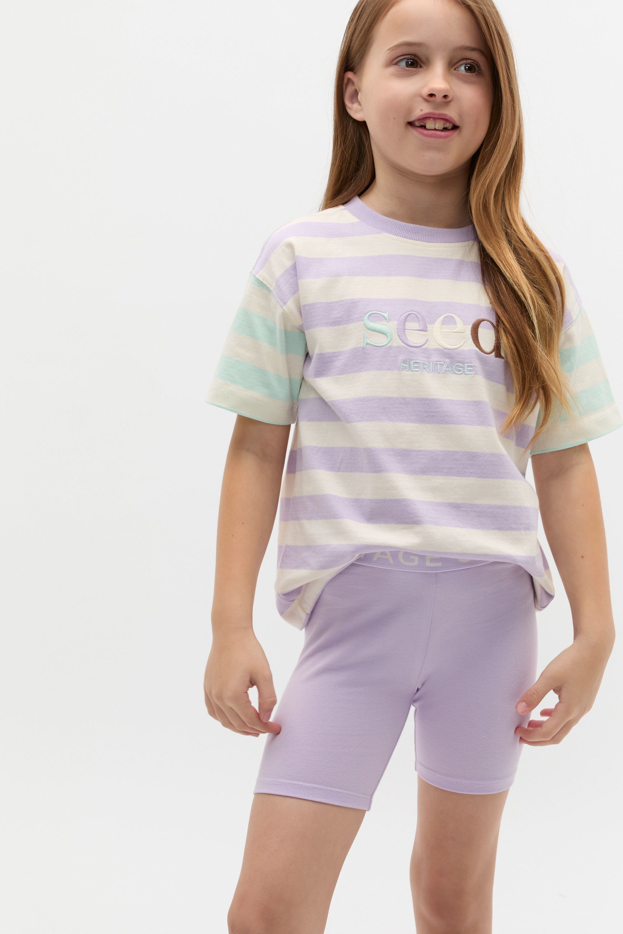 A handy addition to her everyday outfitting, these bike shorts are ready to run, jump and play in. Crafted in a premium stretch cotton blend, they feature an elasticated waistband with Seed Heritage branding, and a stretch fit through the leg.