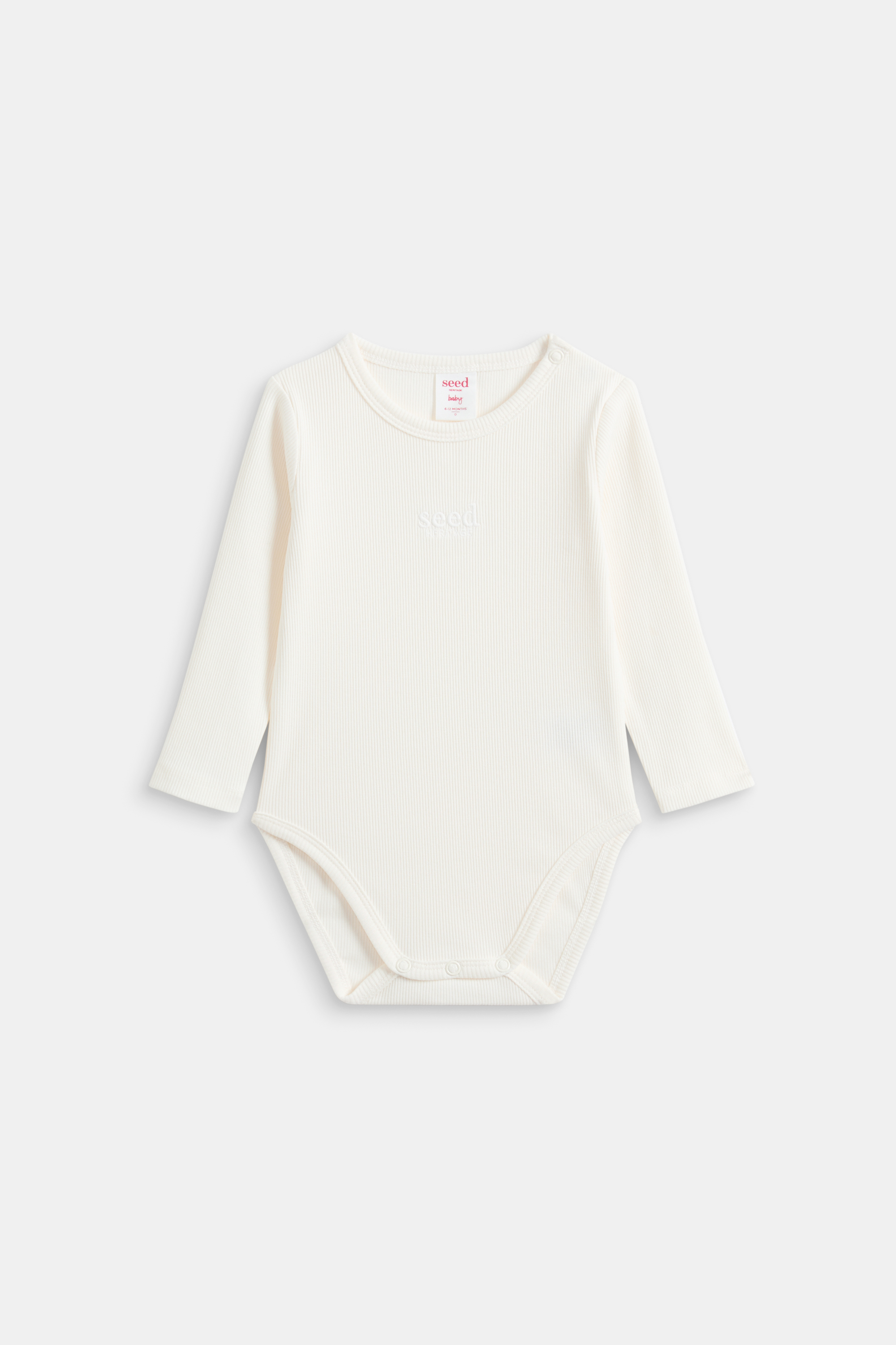 Made from an ultra-soft cotton blend with the perfect amount of stretch and a ribbed texture, this long-sleeved bodysuit is a must-have for any newborn. It features an embroidered Seed Heritage logo, as well as snap fastenings at the neckline and at the gusset for quick and easy changes.