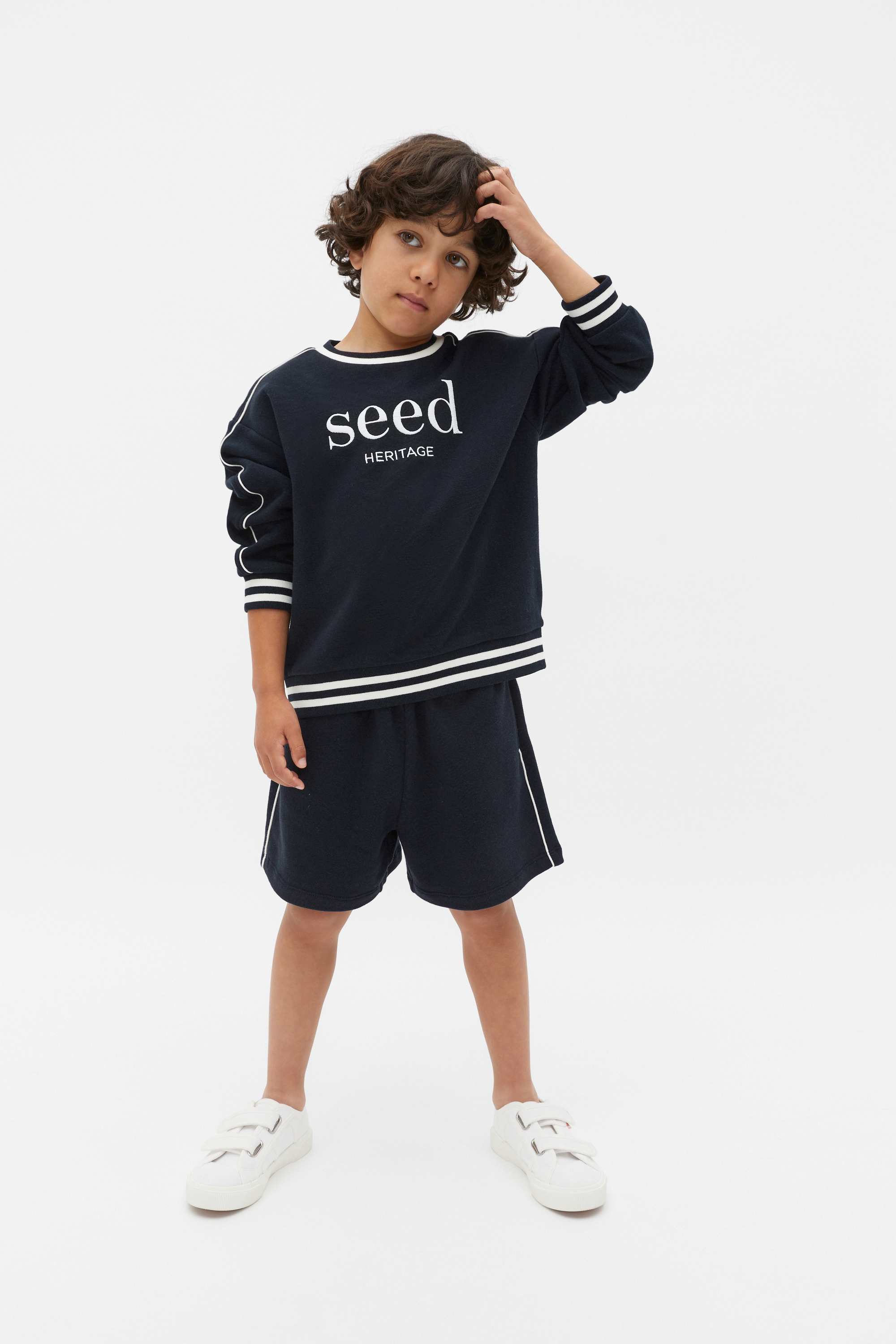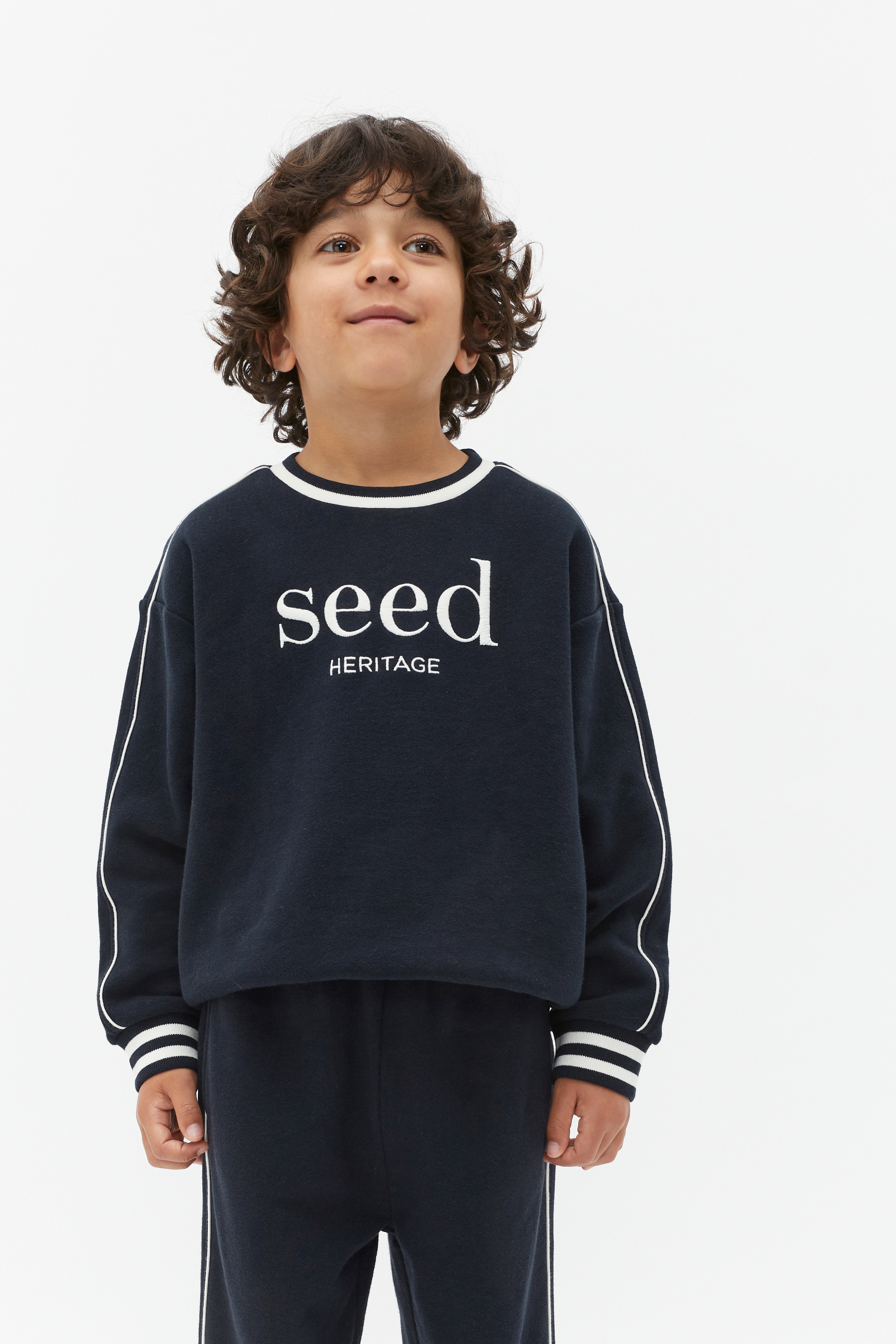A classic from our logo collection, this sweater is the ideal layer to add to his casual wardrobe. Crafted in premium cotton, it features a crew neck, long sleeves, elasticated cuffs with a contrast stripe and an embroidered Seed Heritage logo.