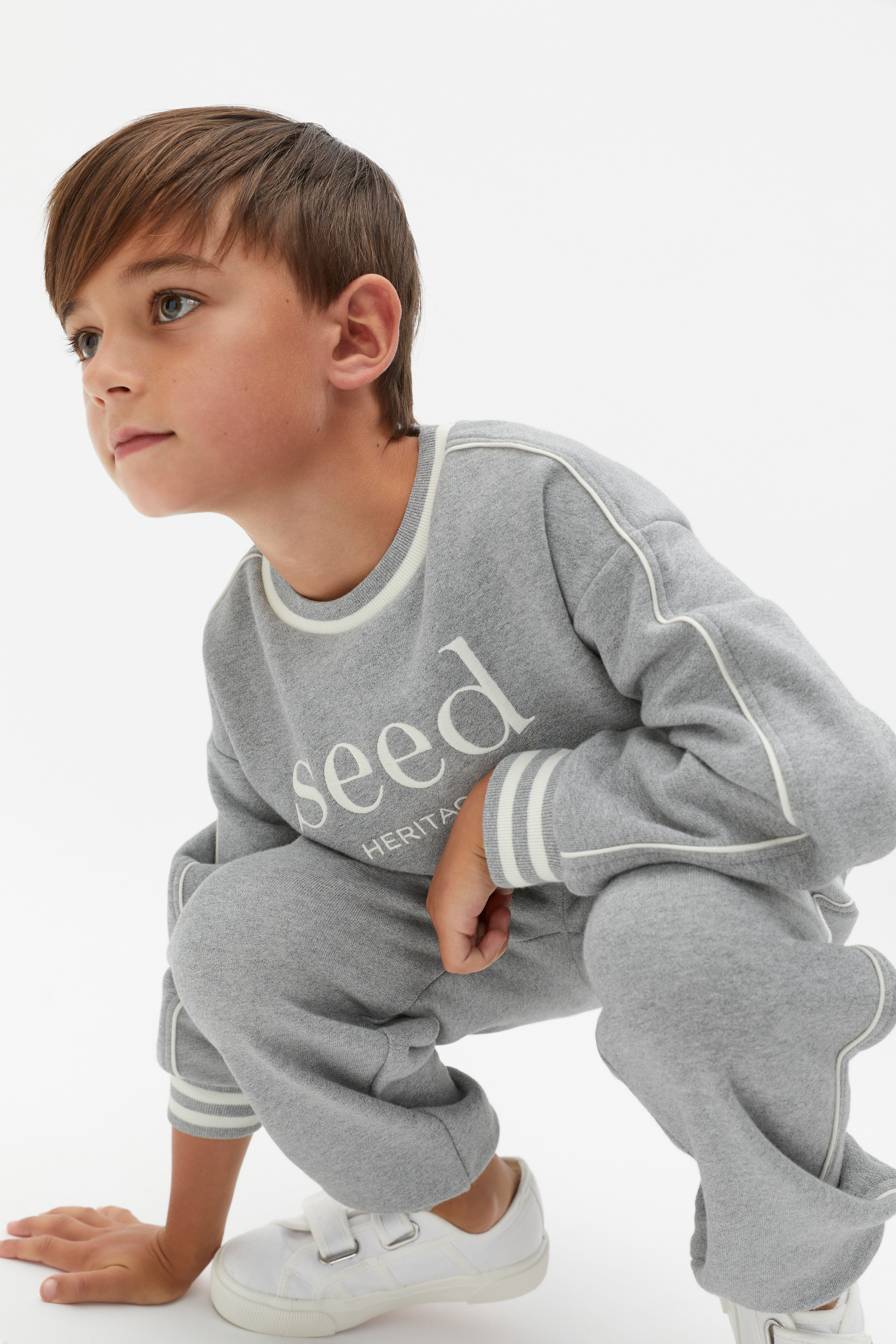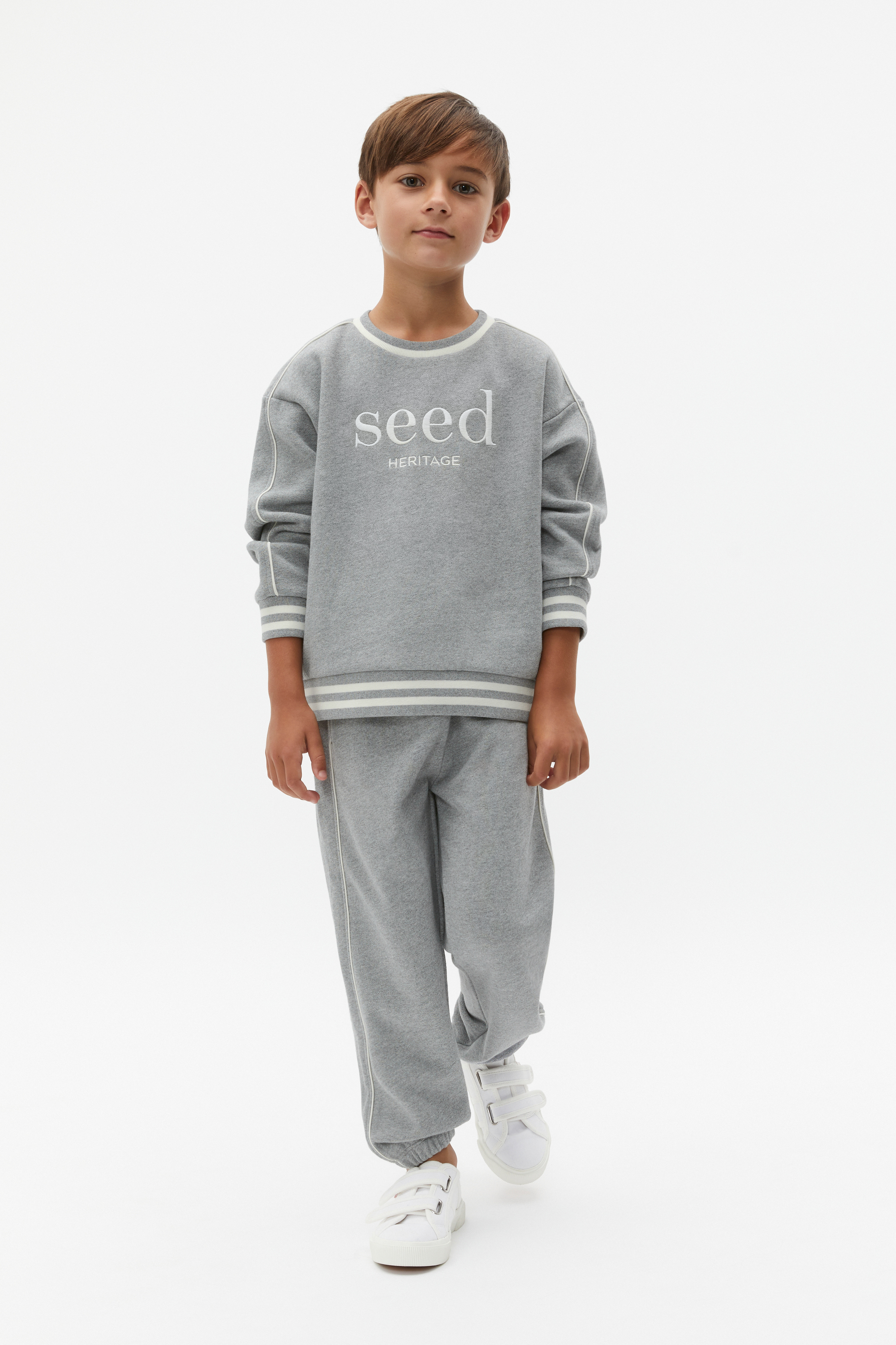 A classic from our logo collection, this sweater is the ideal layer to add to his casual wardrobe. Crafted in premium cotton, it features a crew neck, long sleeves, elasticated cuffs with a contrast stripe and an embroidered Seed Heritage logo.