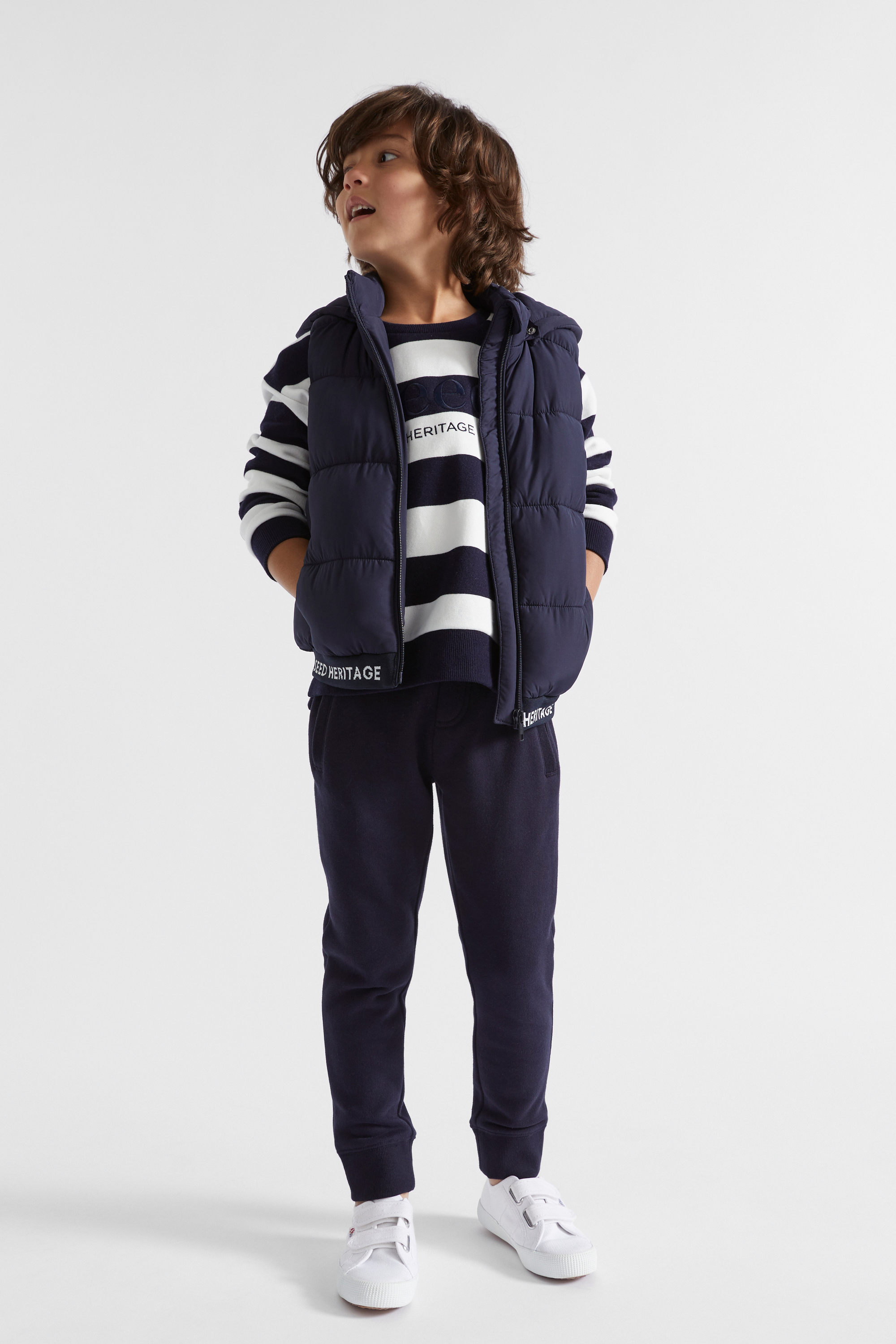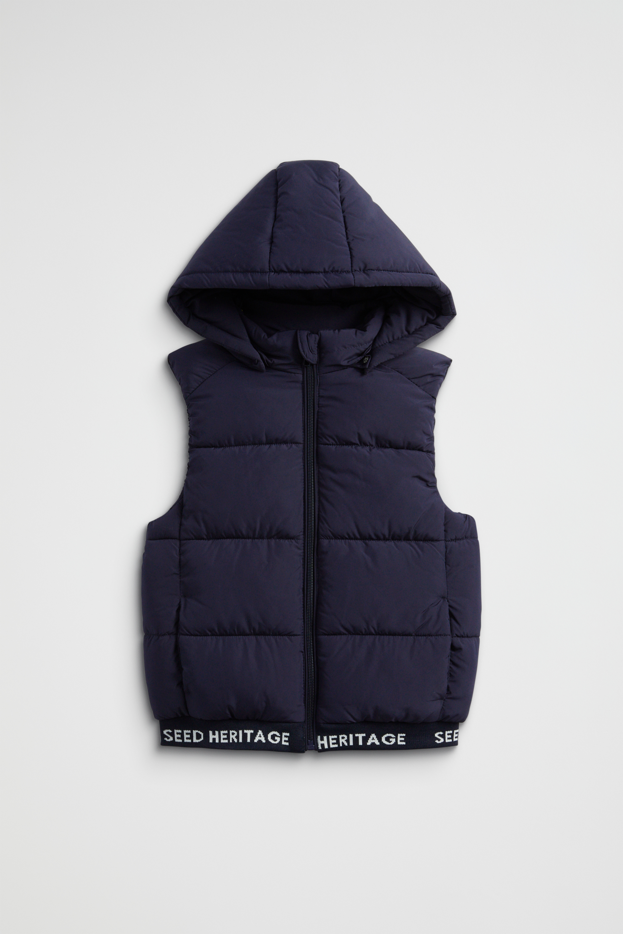 Perfect for layering as the weather cools, this puffer vest features a snap-off hood, zip front and angled pockets. The elasticated hem is finished with a Seed Heritage logo detail. Made from nylon.