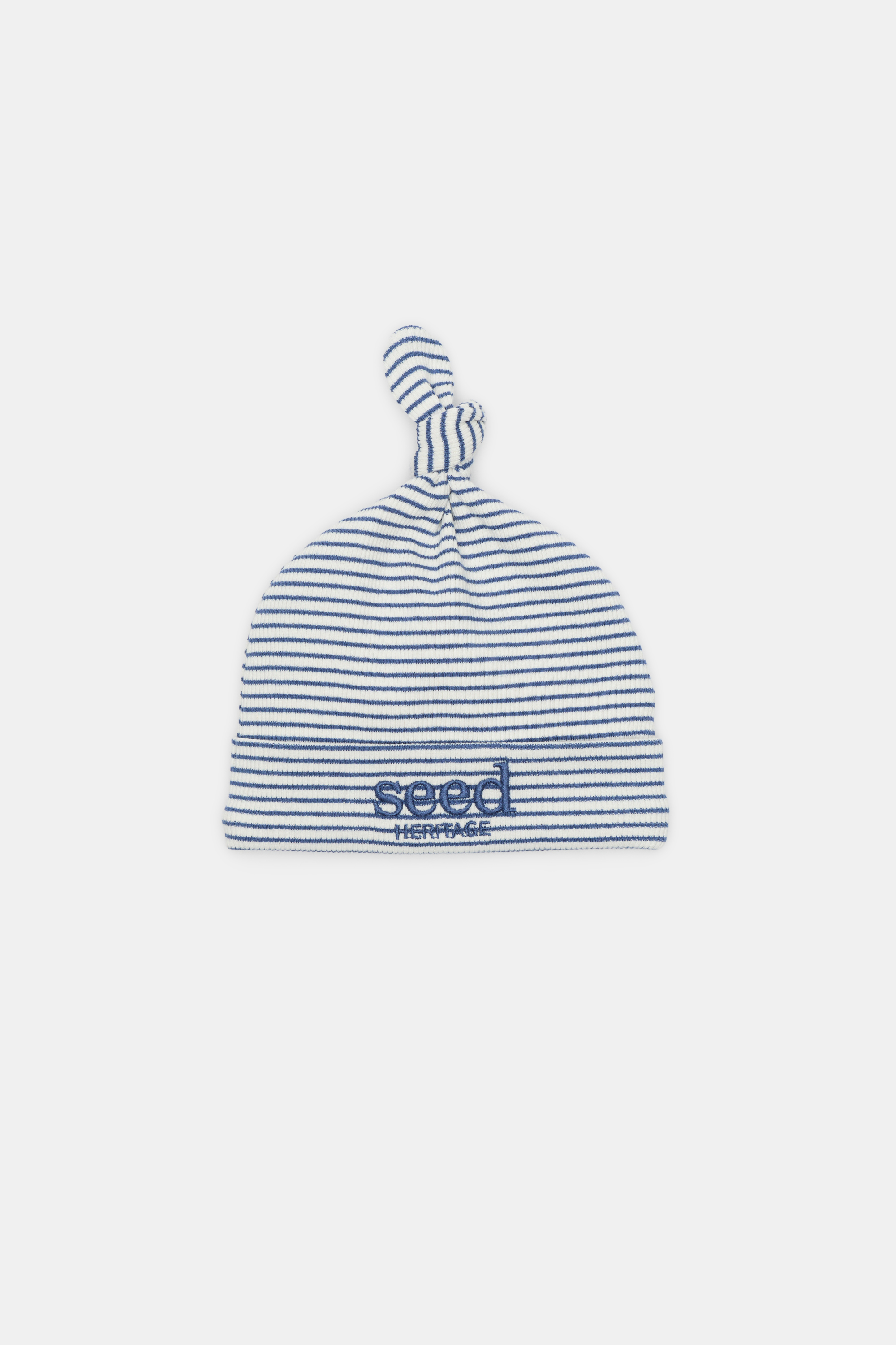 An essential for any newborn, this hat has a soft rib finish and a classic stripe design. Coming in a range of different colours, it's crafted in premium cotton and can be paired with the matching bib, leggings, onesies or logo wrap for the perfect newborn gift.