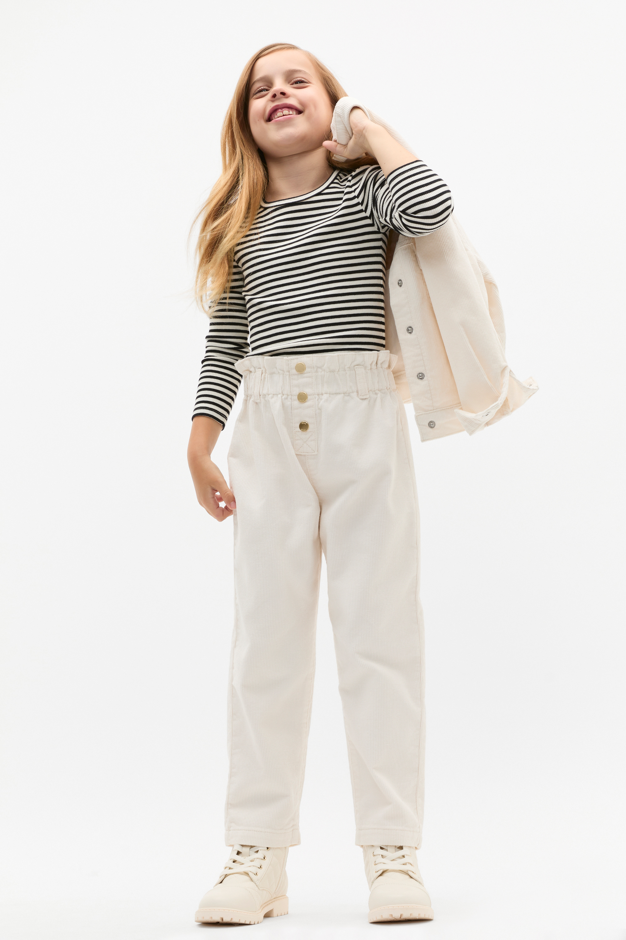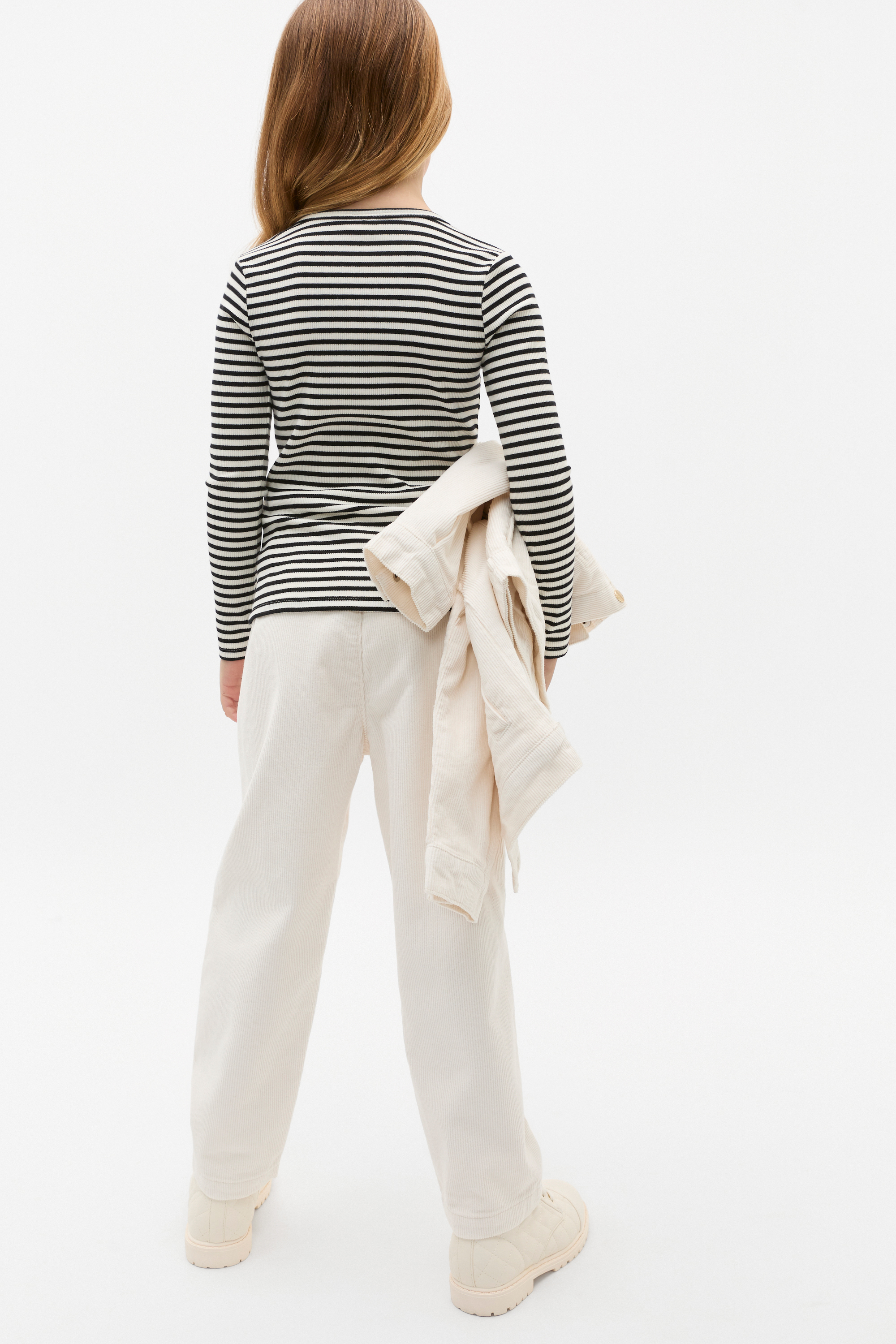 Ideal for any season, this ribbed tee has a round neckline, long sleeves, and a relaxed fit. Crafted from a comfortable stretch cotton blend.