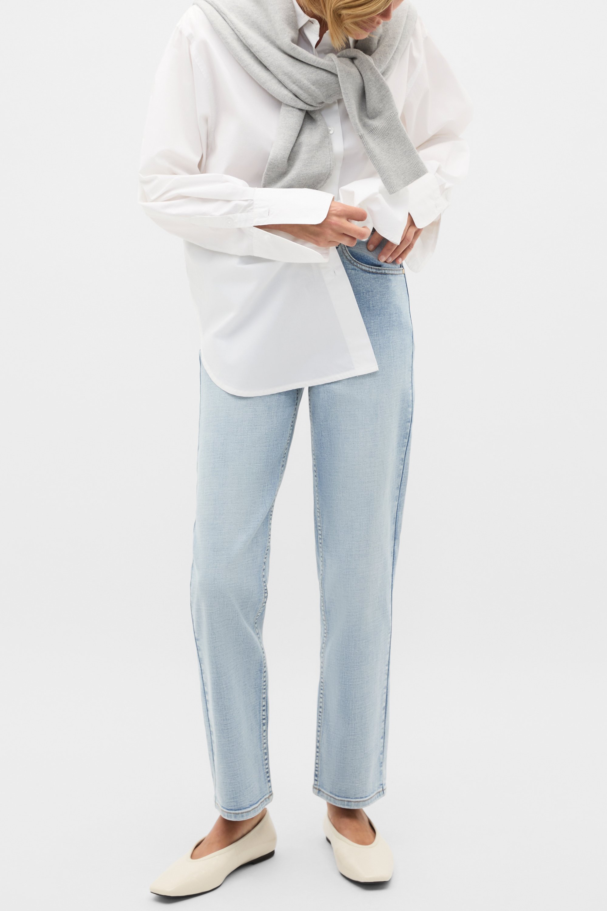 These jeans are an effortless option for your everyday styling, ready to slot right into your wardrobe. Crafted in premium cotton, they feature a fixed waistband with a zip front and front pockets. With a slight stretch, these jeans have a straight leg shape. By choosing our cotton products you're supporting our investment in Better Cotton's mission. This product was sourced via a system of mass balance and therefore may not contain Better Cotton.