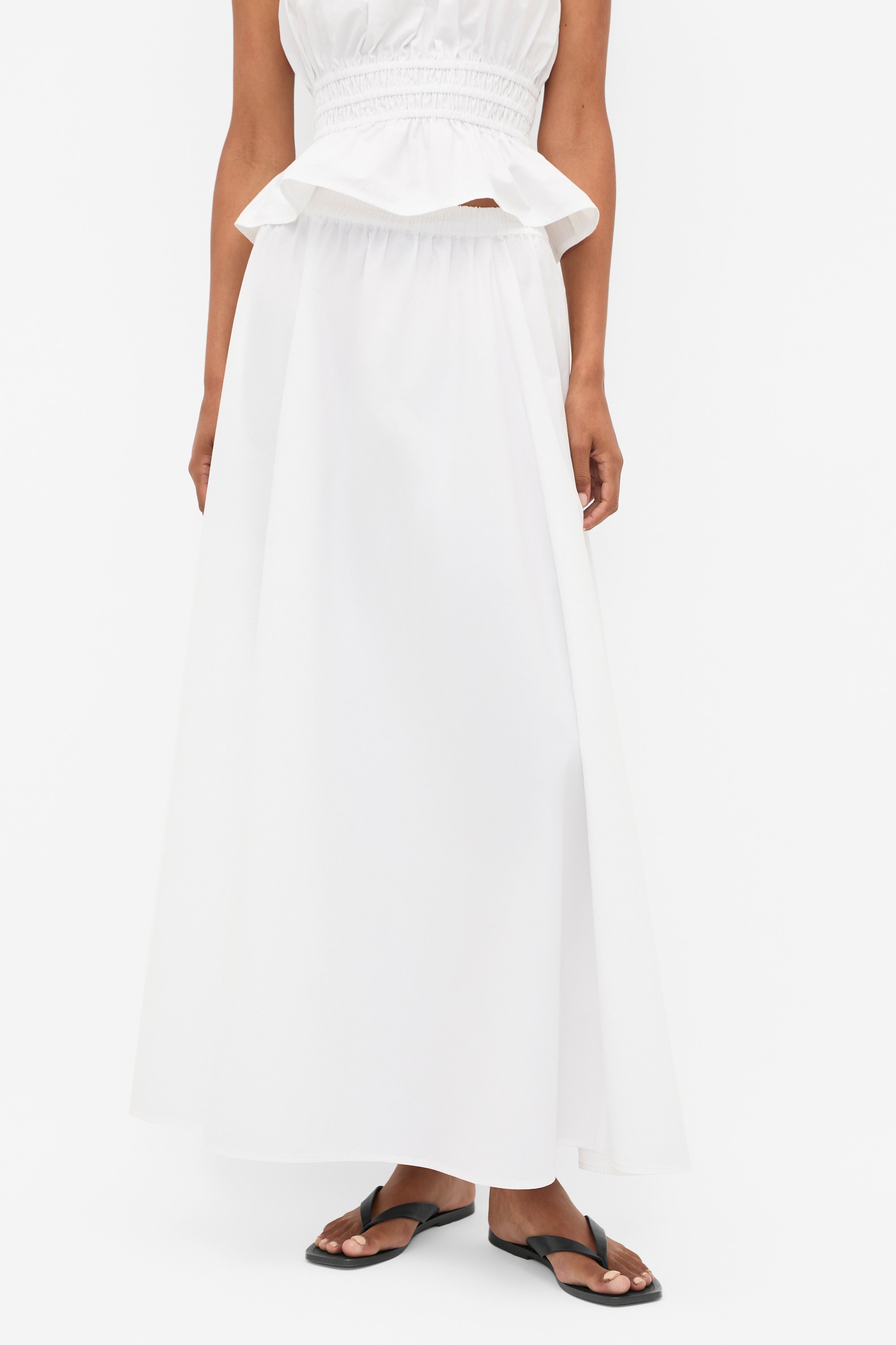 Crafted in a crisp cotton poplin, this skirt is an elegant style bringing ease to your summer. It features an elasticated waistband and falls to a maxi length.