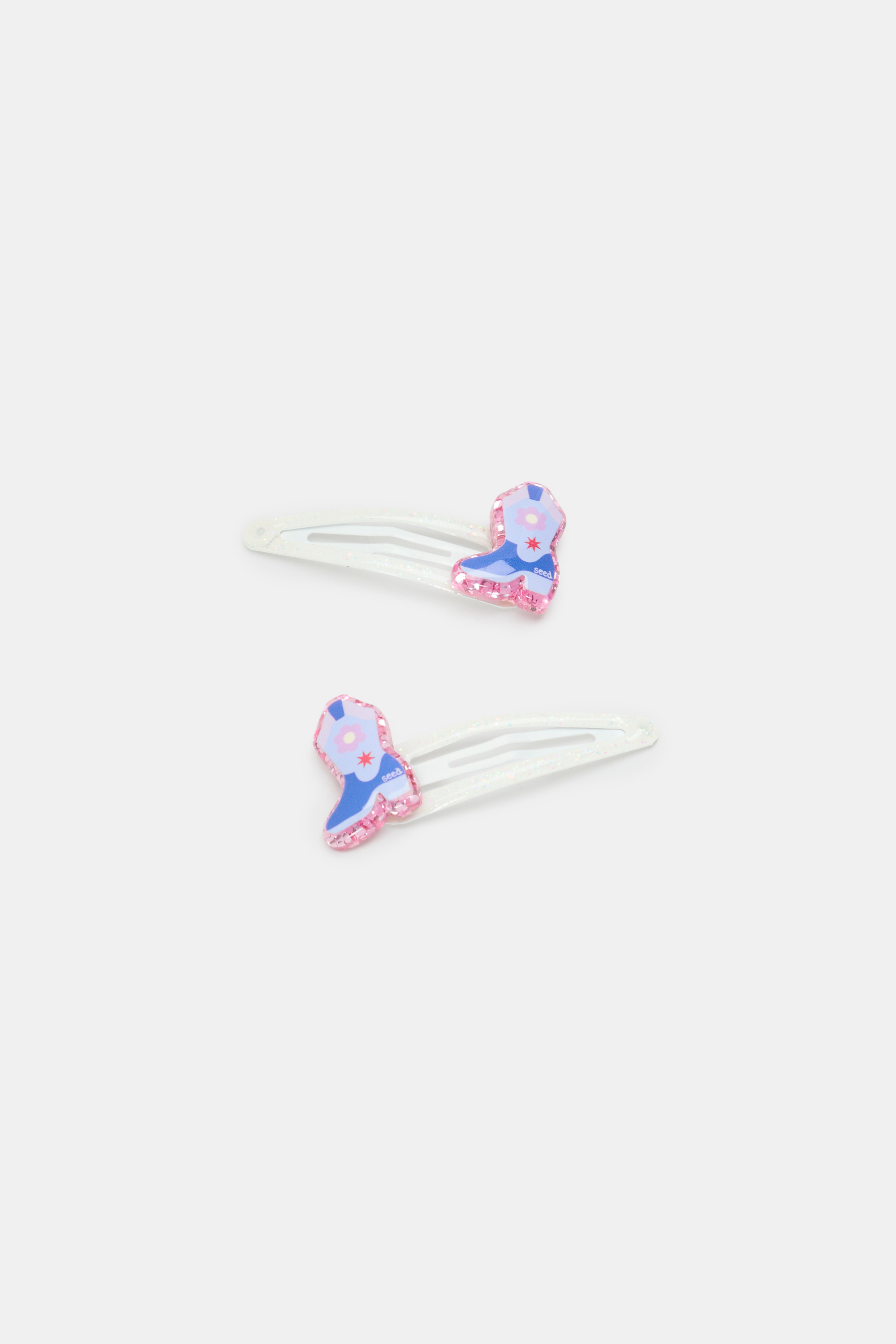 Sparkly and fun, this set of hair snaps features the cutest cowgirl boots. This product is not a toy and is not suitable for children three years and under.