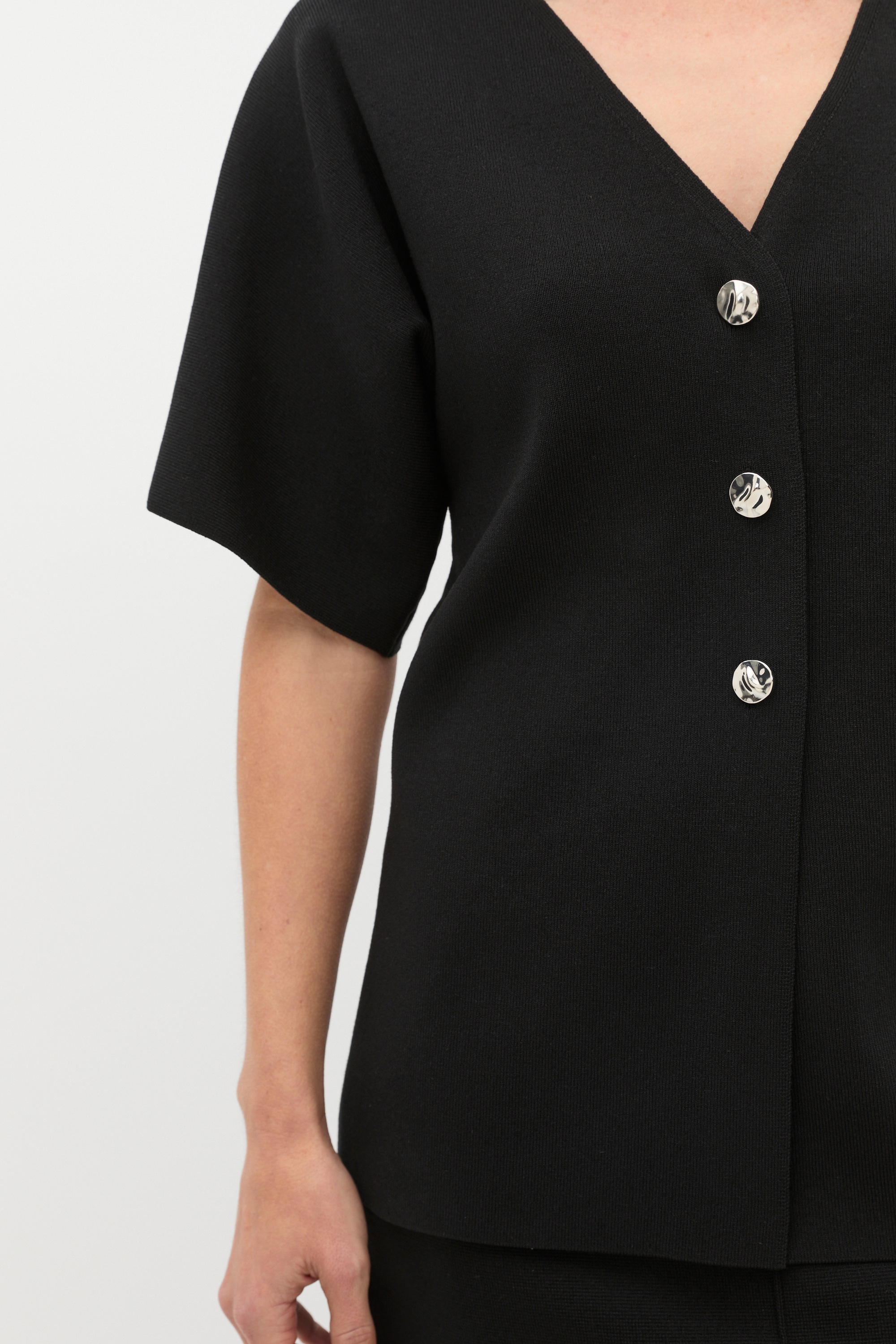 A chic addition to your evening-wear looks, this cardigan is a medium weight style, finished in a smooth crepe knit. With versatile styling options, it features a V-neck, bat wing sleeves and a button-through front.
