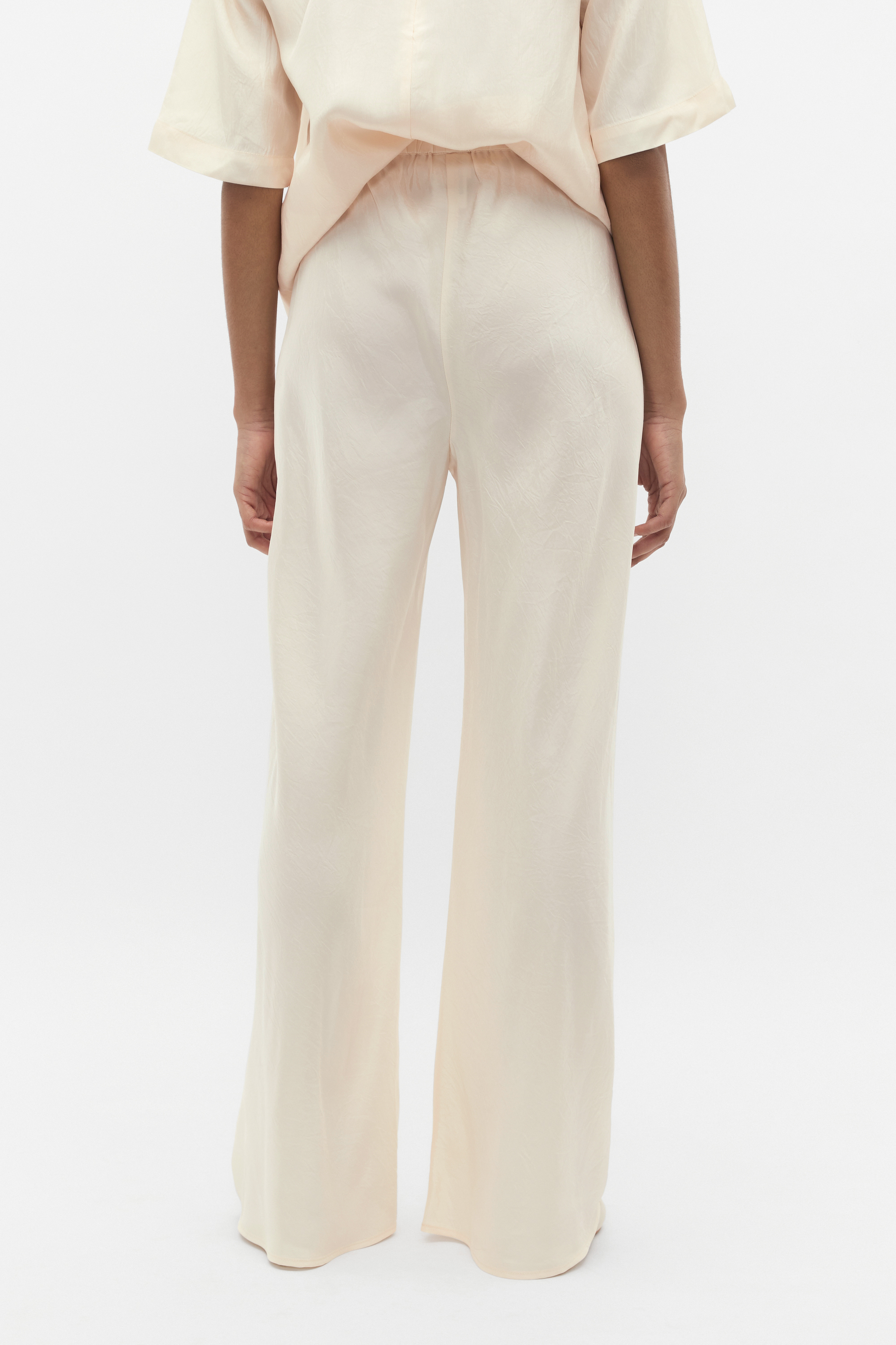 Soft and simple, these pants are finished in a crinkle satin for an elevated feel. They have an elasticated waistband and a straight leg shape. Style with the crinkle satin top for a head-to-toe curated moment.