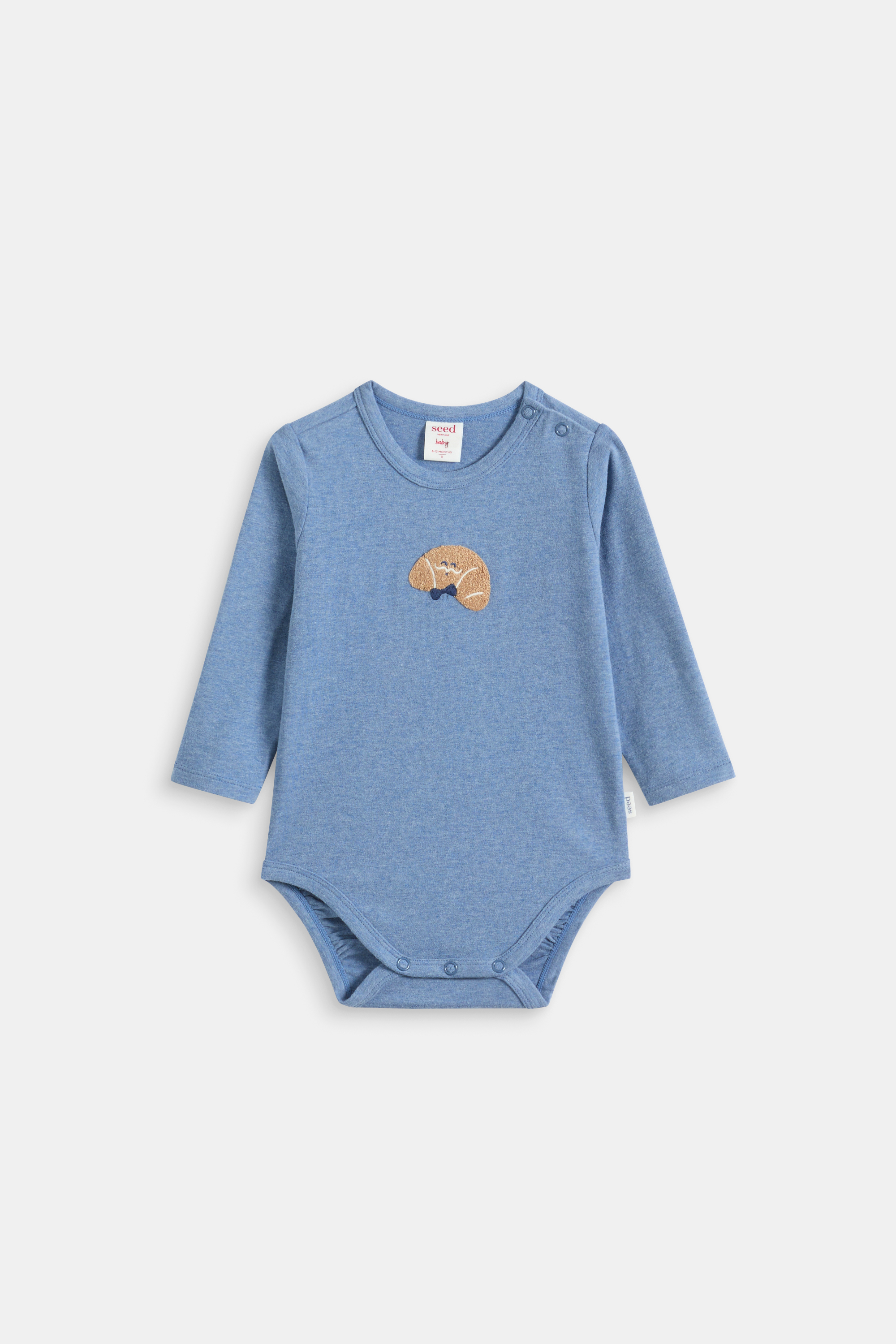 A must-have essential for any newborn, this bodysuit is comfortable and sweet, featuring an adorable smiling croissant design. Crafted in a soft cotton blend with just the right amount of stretch, it features snap fastenings at the shoulder and gusset for quick and easy changes.