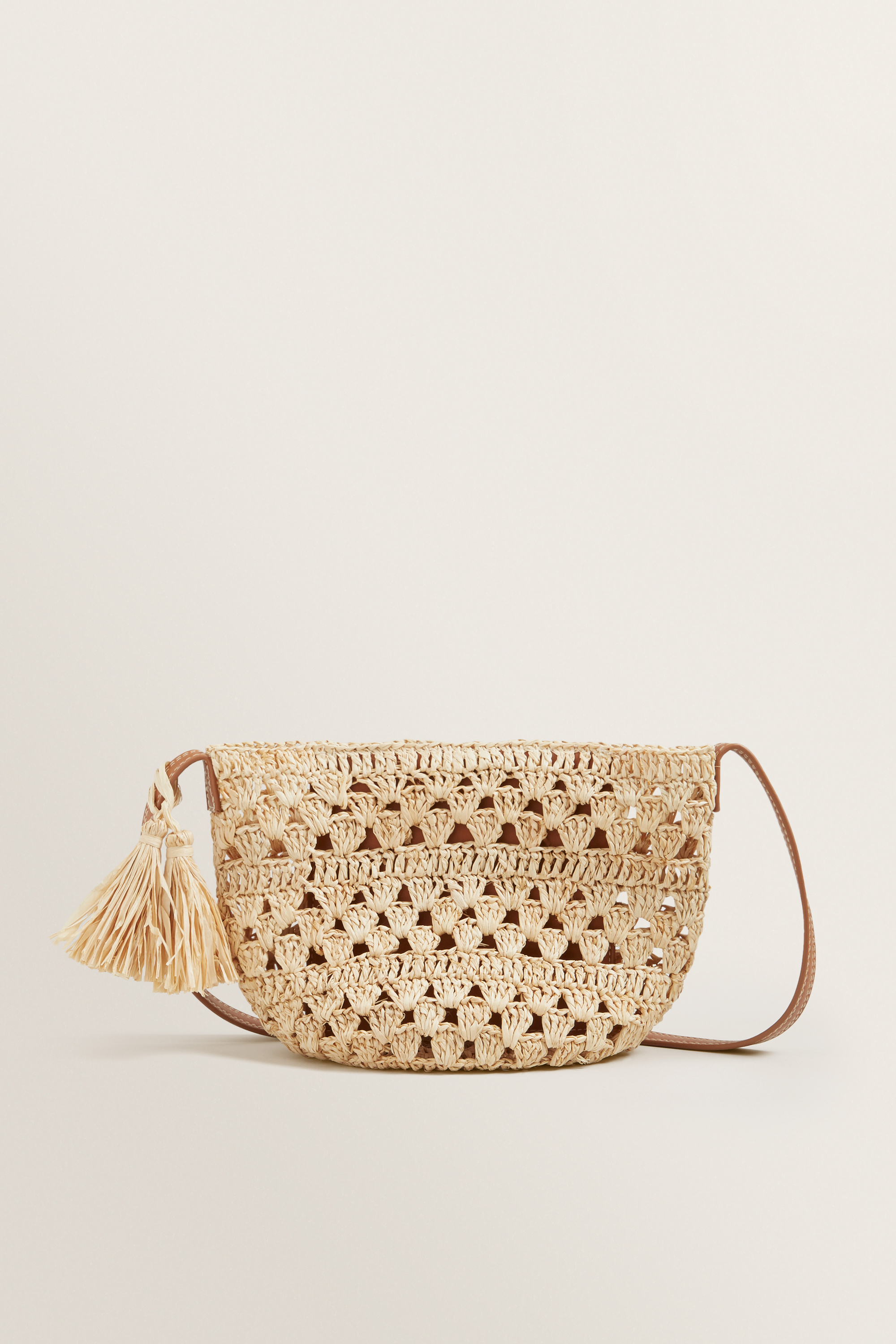 Add this Crotchet Raffia Crossbody into your summer rotation. Featuring a woven fabric, leather-look trims, magnetic stud closure and crossbody shoulder straps.