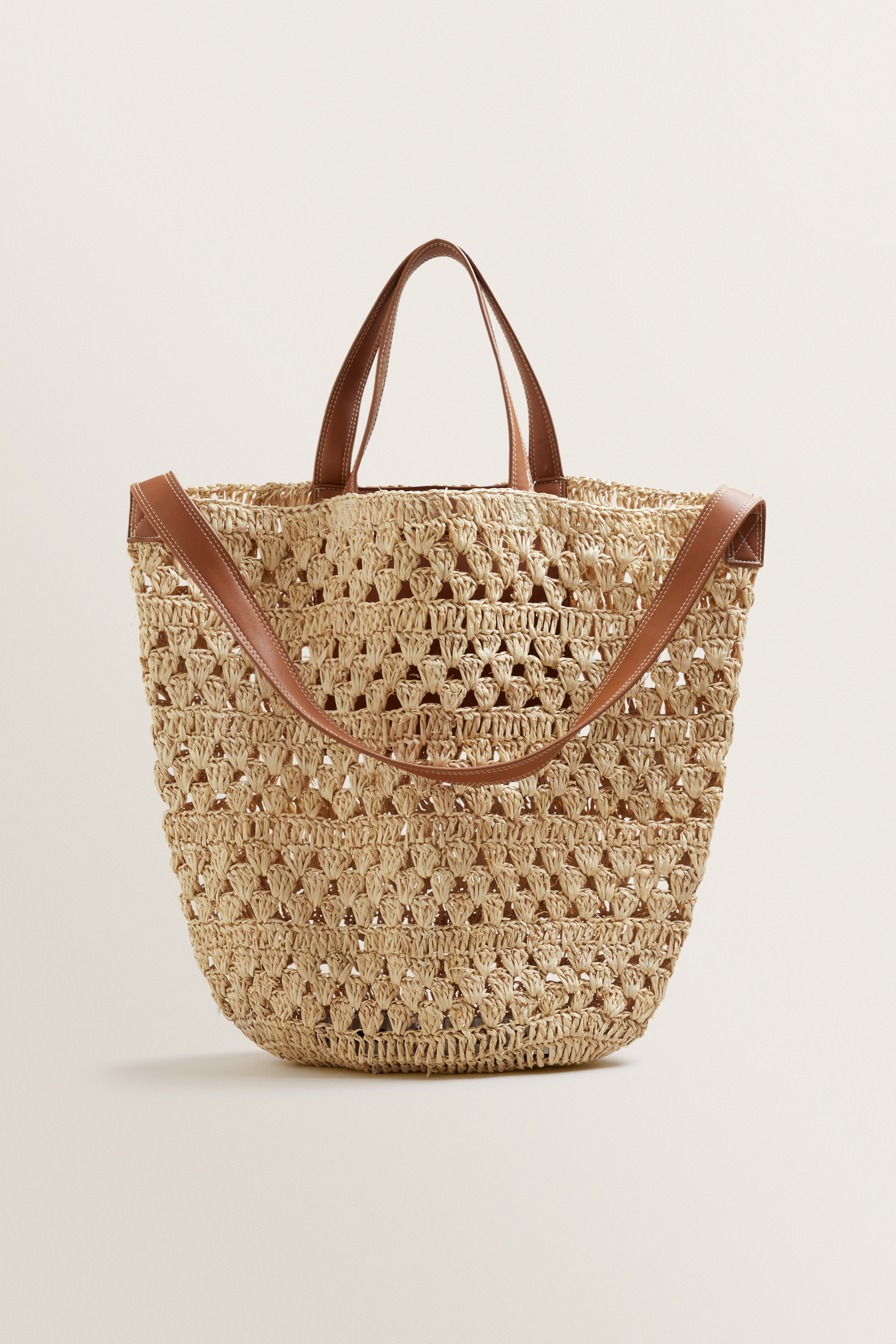Add this Crotchet Raffia Tote into your summer rotation. Featuring a woven fabric, leather-look trims, magnetic stud closure, top handles and crossbody shoulder straps.