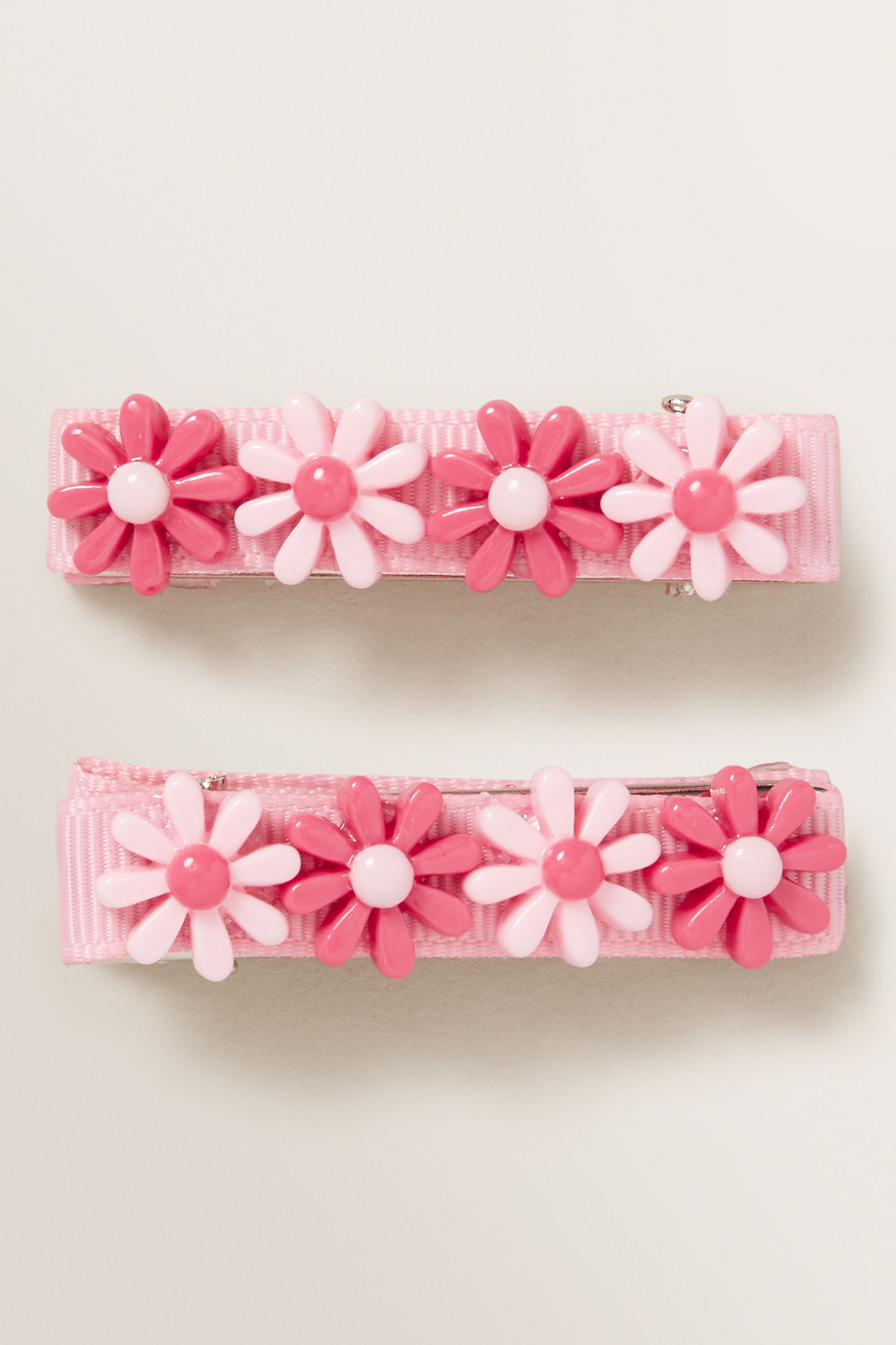 Frolick in fields of flowers, wearing these Daisy Duck Clips. These clips feature secure closures to hold hair firmly in place all day. This is not a toy. Potential choking hazard. Not recommended for children 3 years and under.