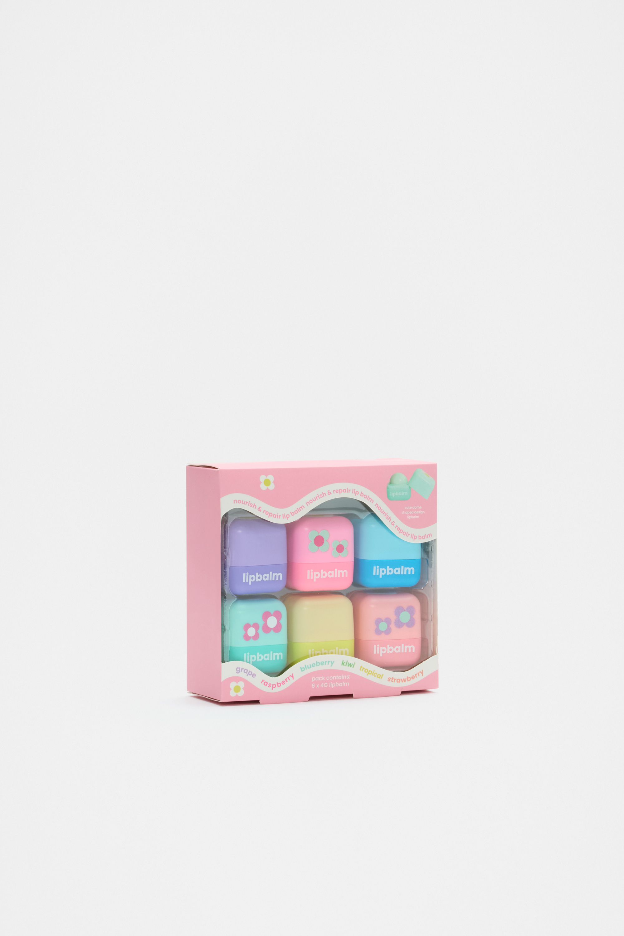 Colourful and fun, this lip balm set has the sweetest daisy design and a range of fruity scents. This product is not a toy and is not suitable for children three years and under.