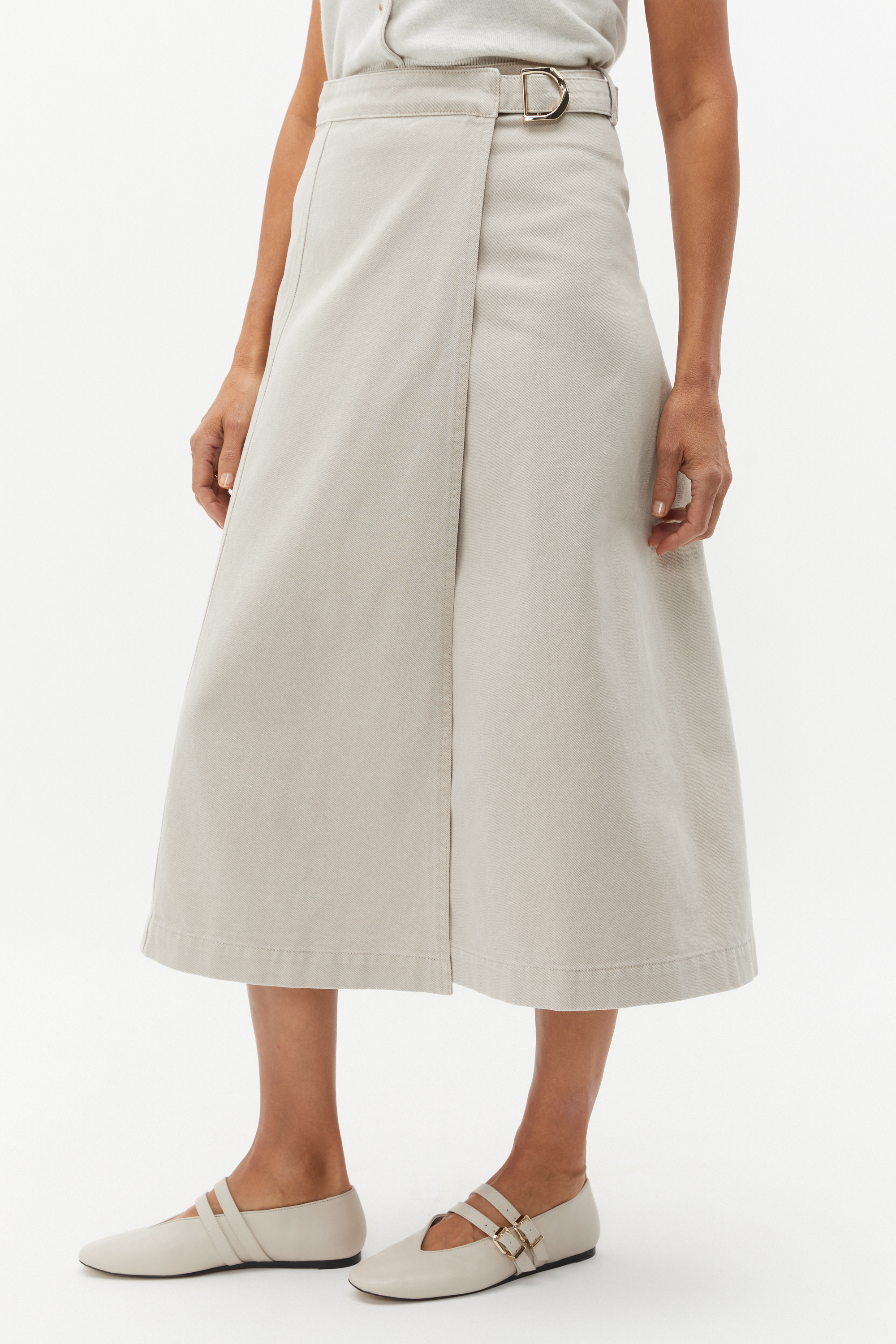 Denim Wrap Front Buckle Skirt  Oat  hi-res