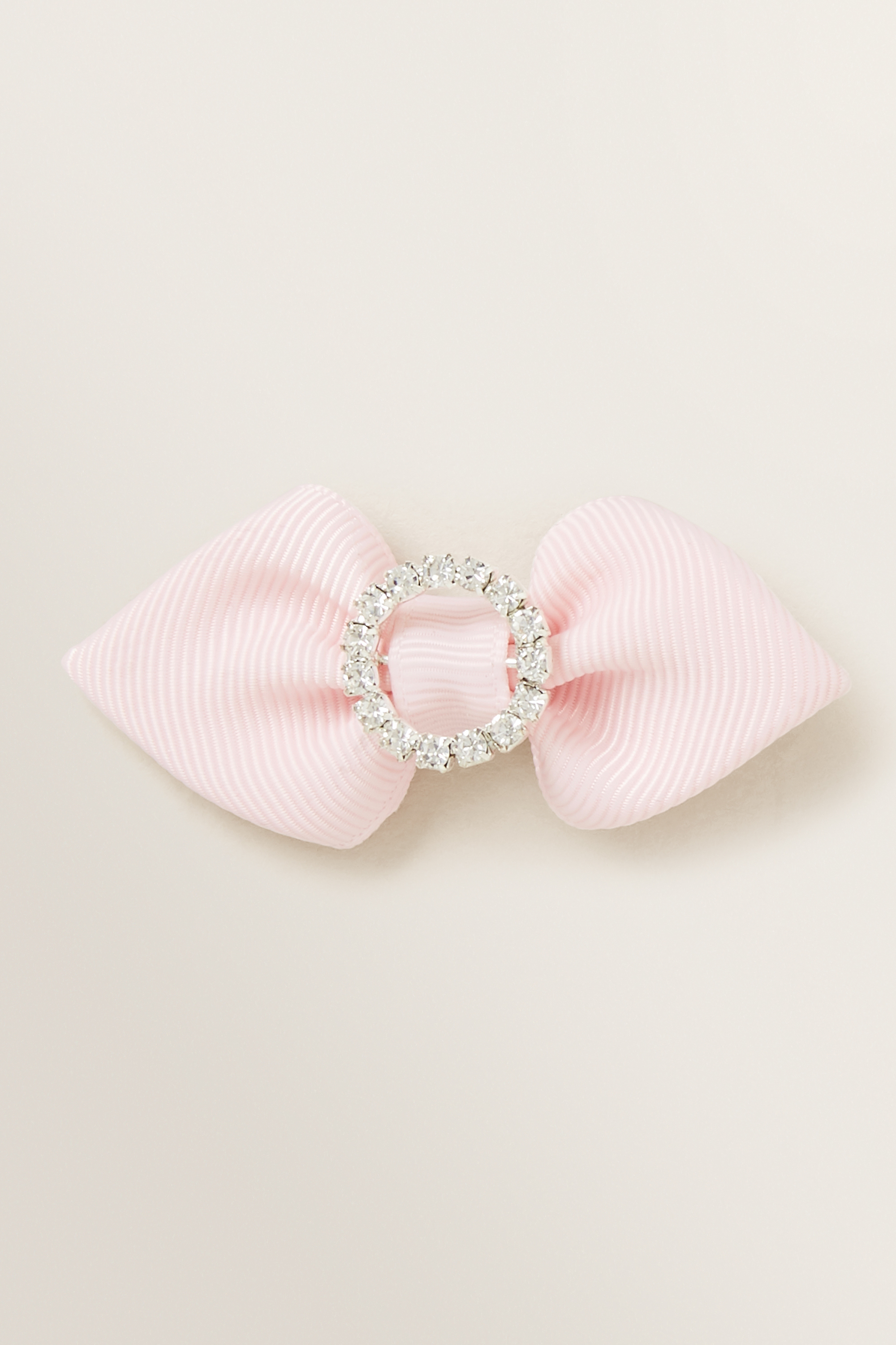 This Diamante Bow features a grosgrain ribbon bow, shimmering motif and a secure duck clip.