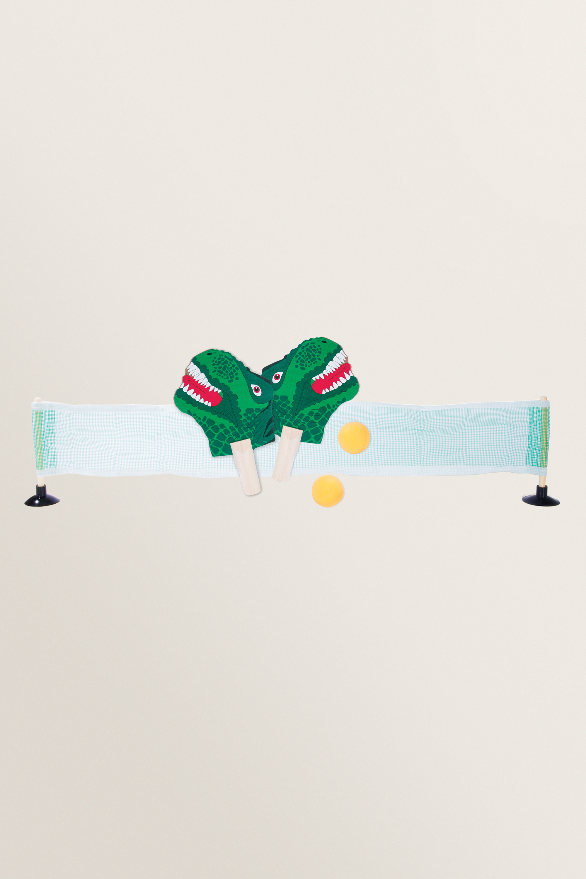 Enjoy hours of outdoor play, with Dino Table Tennis. This set features 2 wooden bats, 1 ball and mini net.