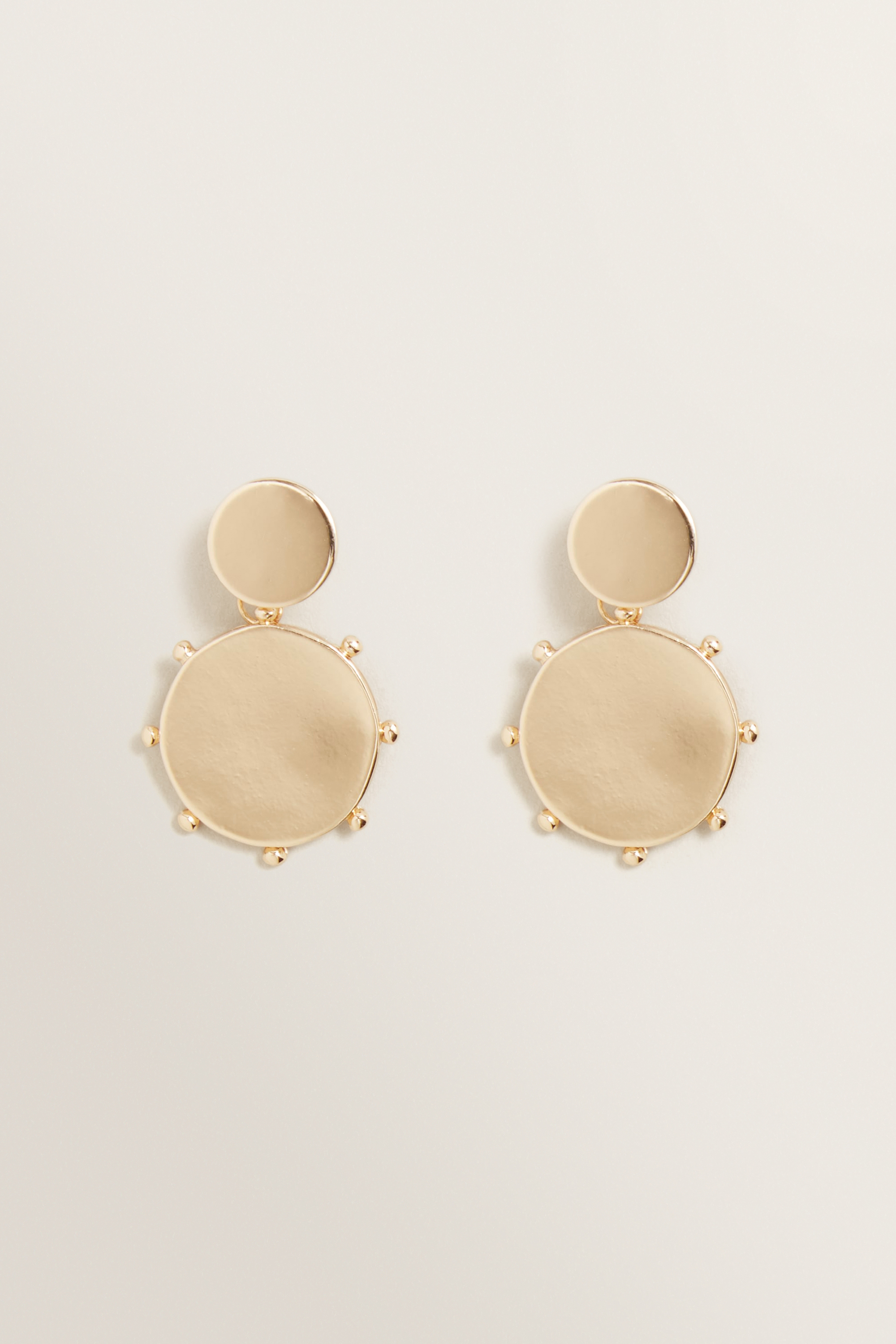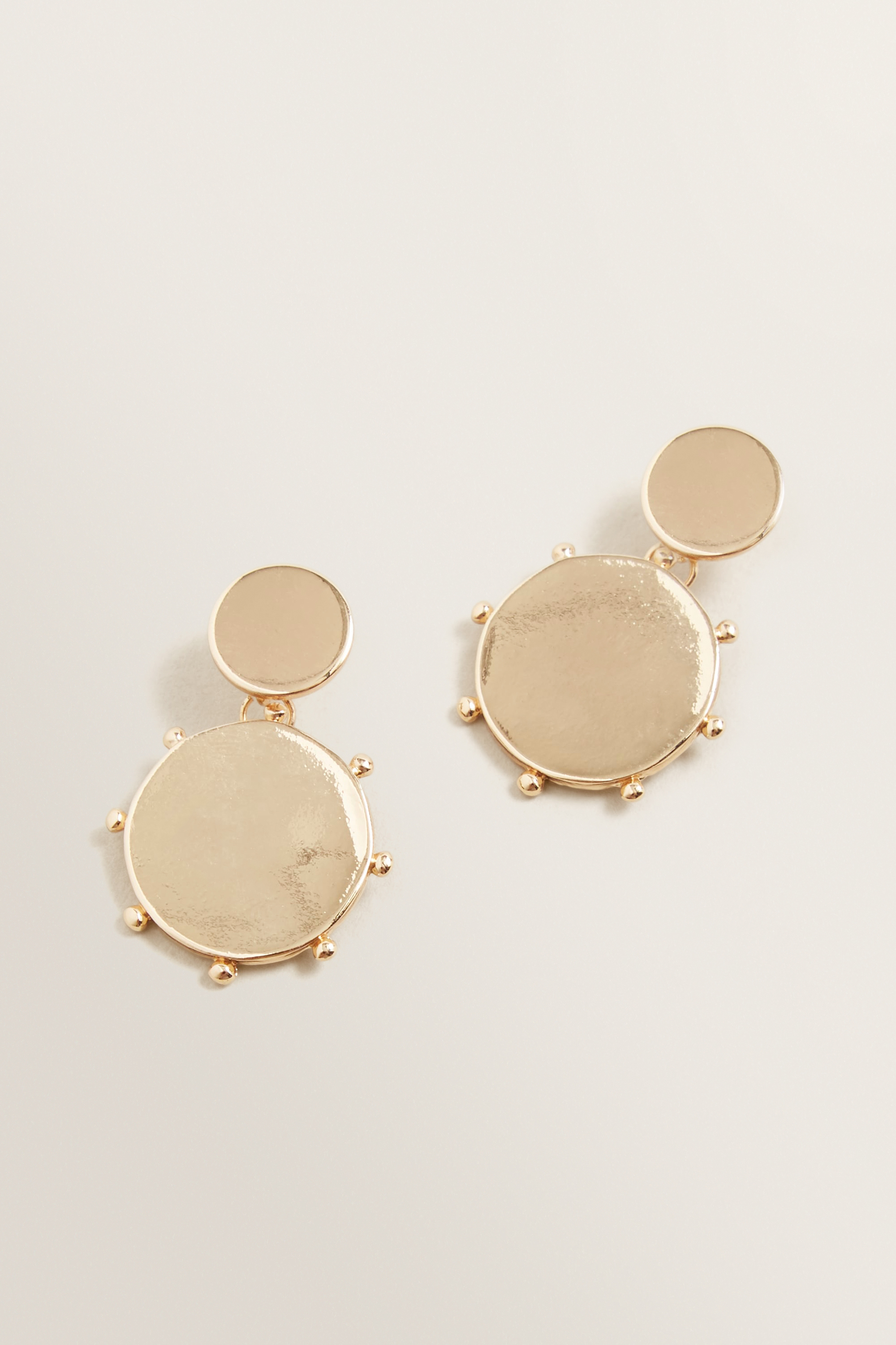 Drawing inspiration from the Art Deco era, these Disc Drop Earrings feature brass hardware.