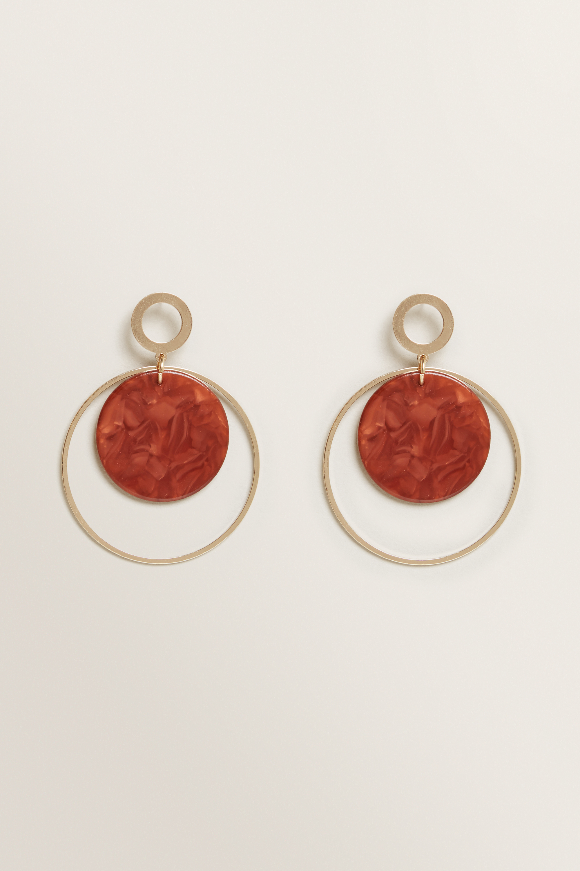 These Disc Earrings are detailed with a modern double hoop, resin detailing and secure stud closure.