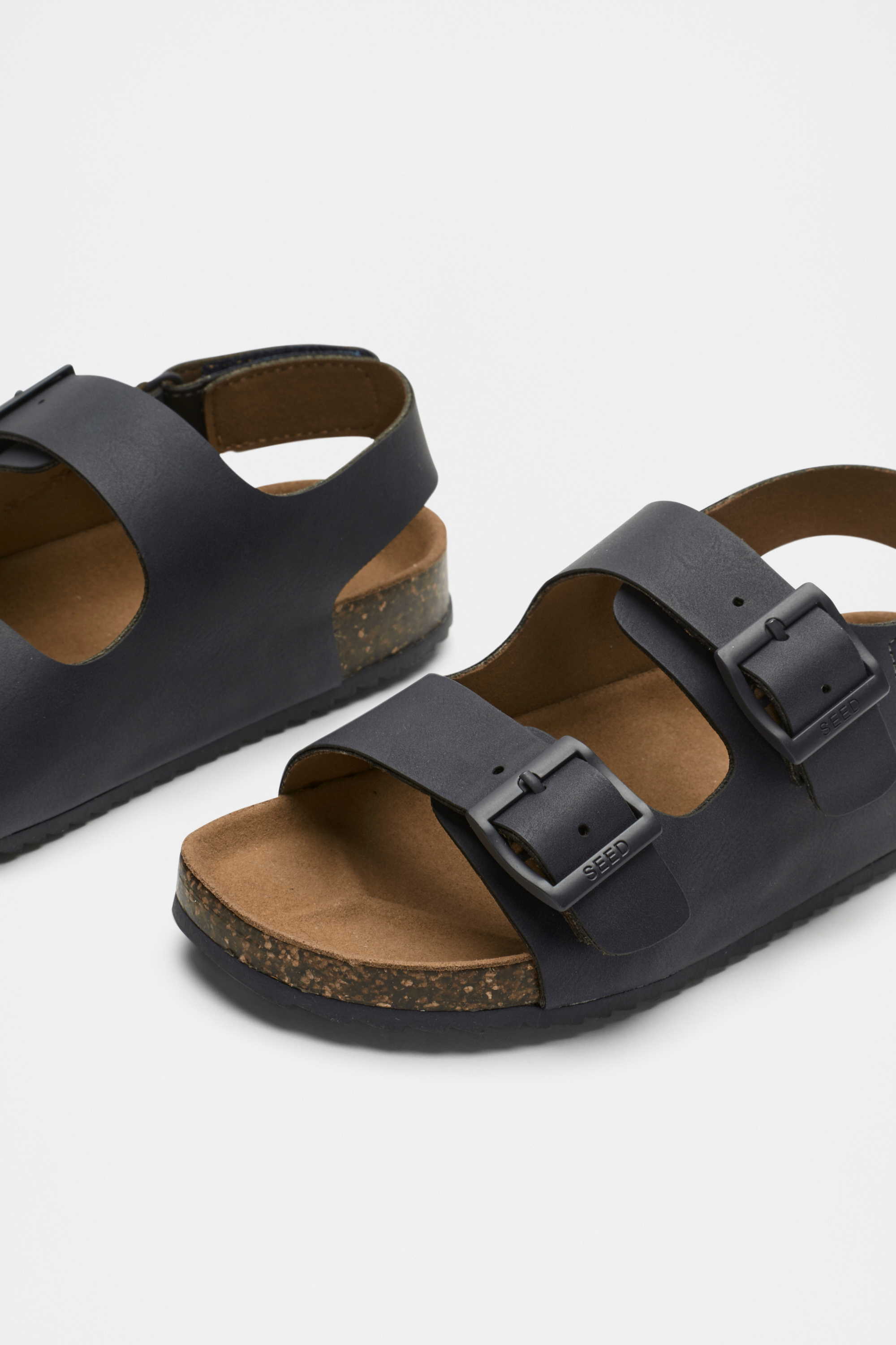 Fun and easy to wear, these slides feature two adjustable top straps along with a back strap that secures with a hook-and-loop closure. Coming in versatile colours, they have a classic cork sole with a suede-feel footbed.