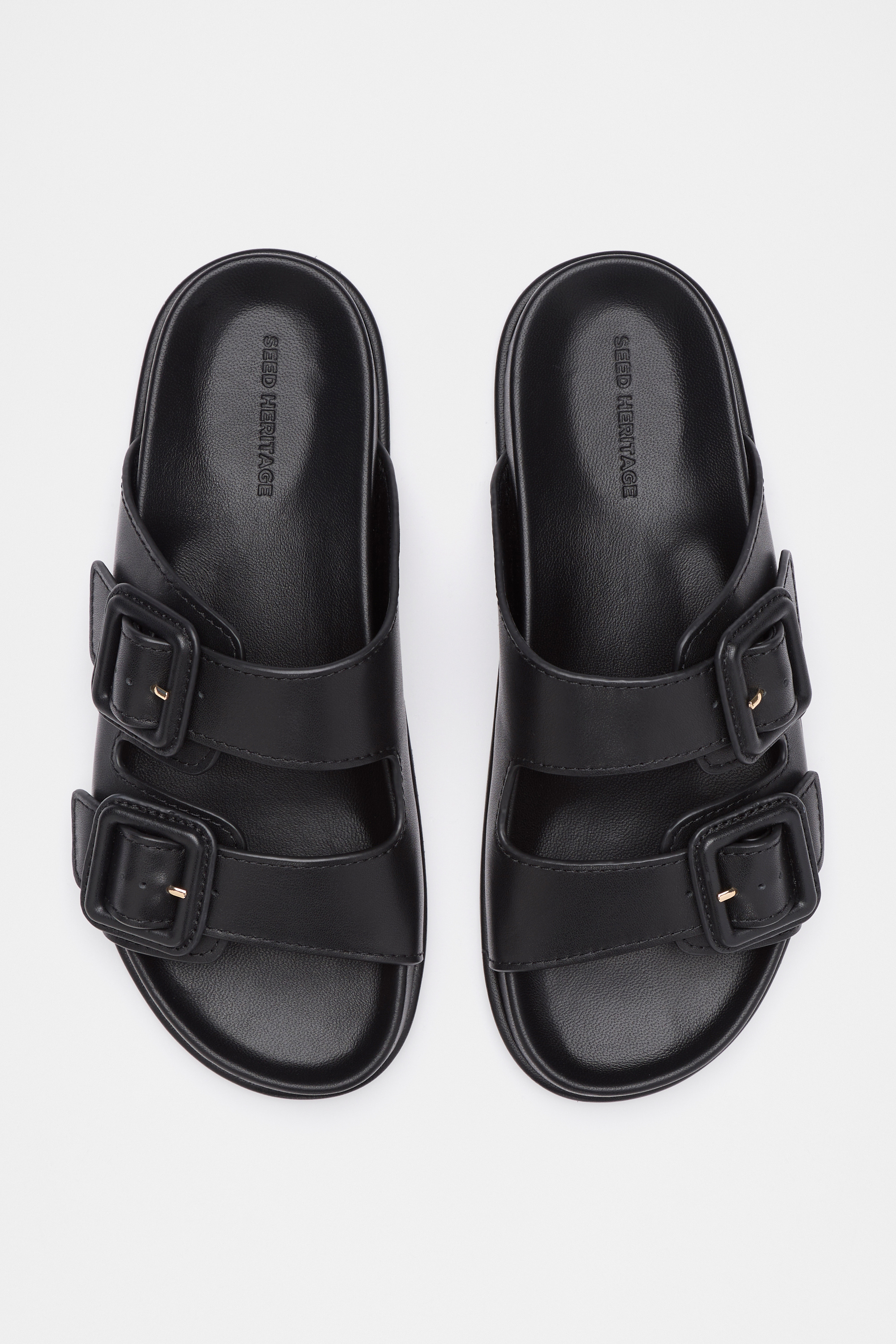 Effortless and chic, these slides are an easy pair for comfort and sophistication. Crafted with a premium leather upper, they feature a two strap design with a covered buckle detail. For a comfortable fit, they have a moulded footbed. As a proud member of Leather Working Group, Seed supports their mission of greater transparency and continuous improvement, helping to create more responsible leather production. For more information, please visit Leather Working Group.