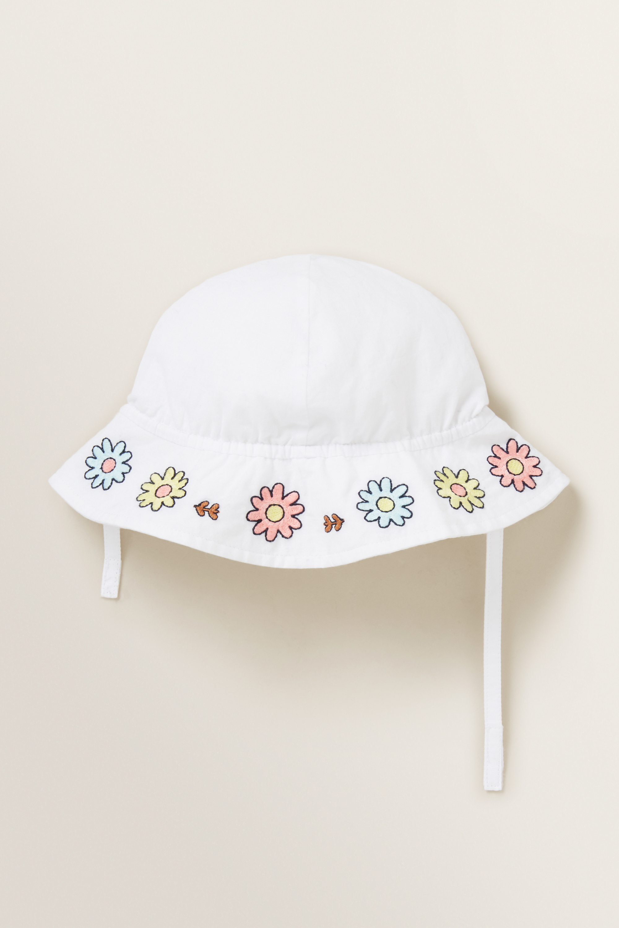 Made from a 100% cotton fabric, this Embroidered Bucket Hat features a panelled crown, chin strap, short brim and lined interior.