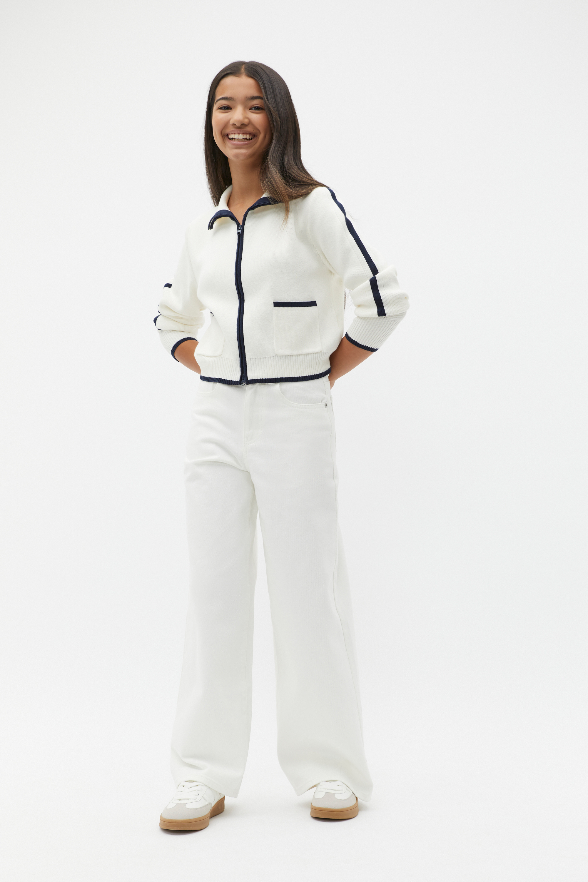 Her new favourite pair, these jeans are ideal to elevate her everyday. Crafted in premium cotton, they feature a fixed waistband, a zip front, belt loops, pockets and a wide leg shape. For versatile styling, they're available in two different colours.