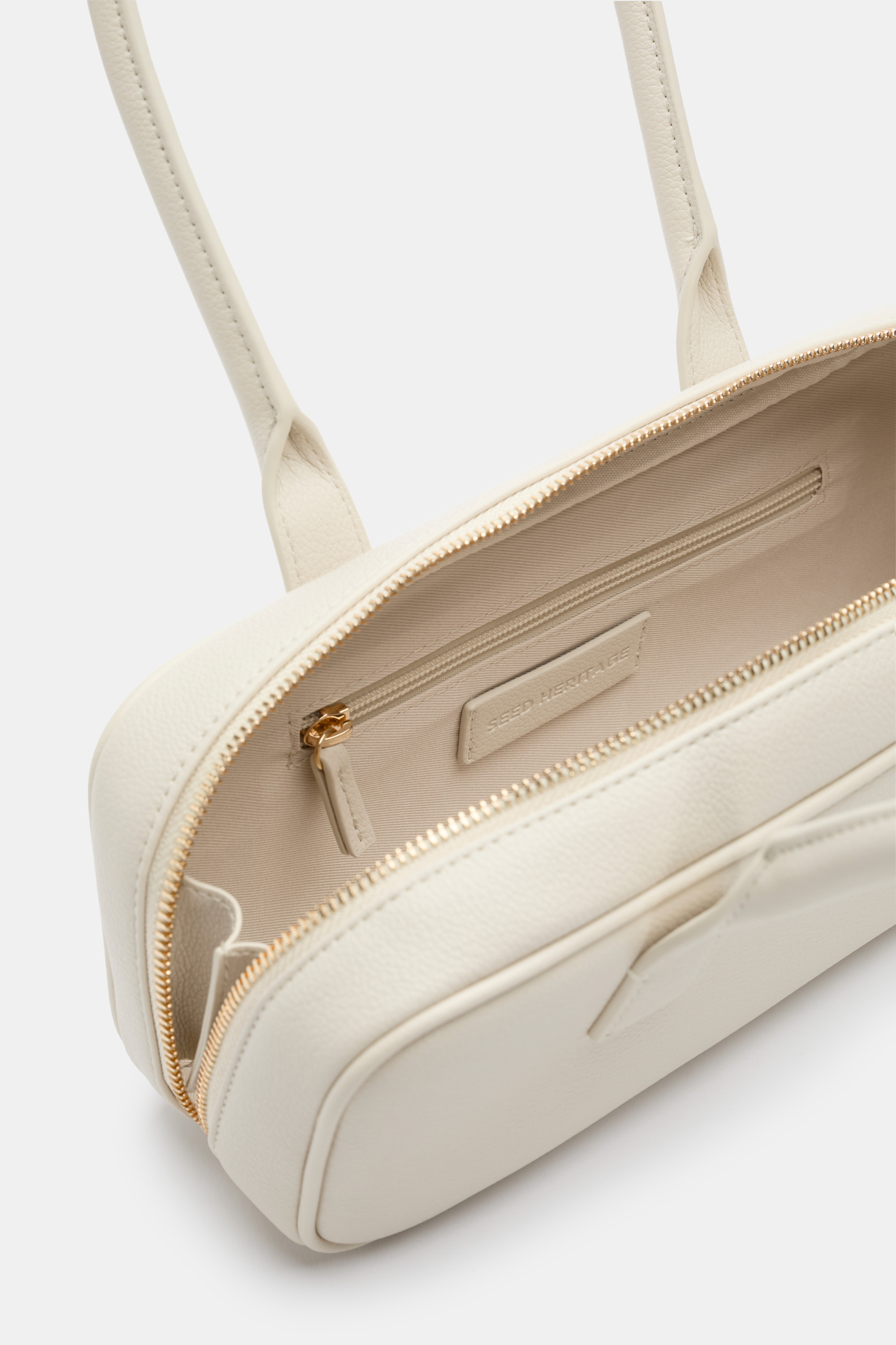 A trending shape, a simple design; this shoulder bag elevates your everyday style. It features a softly structured shape with a top handle detail and secures with a top zip closure.