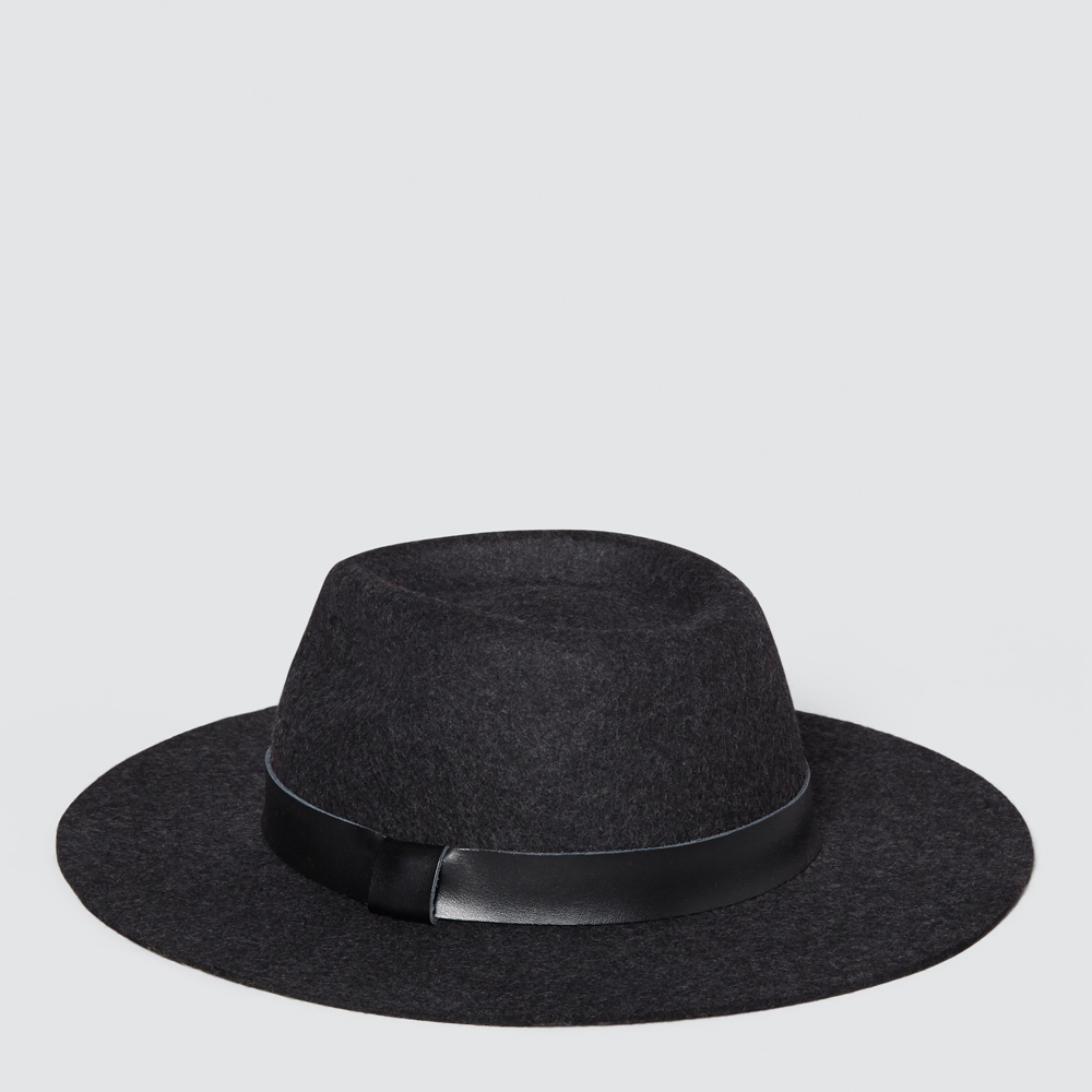 This felt fedora features a wide brim and contrast black band for added texture. Made from wool, this fedora is available in Black and in one size. Please wash as per care instructions found on garment.
