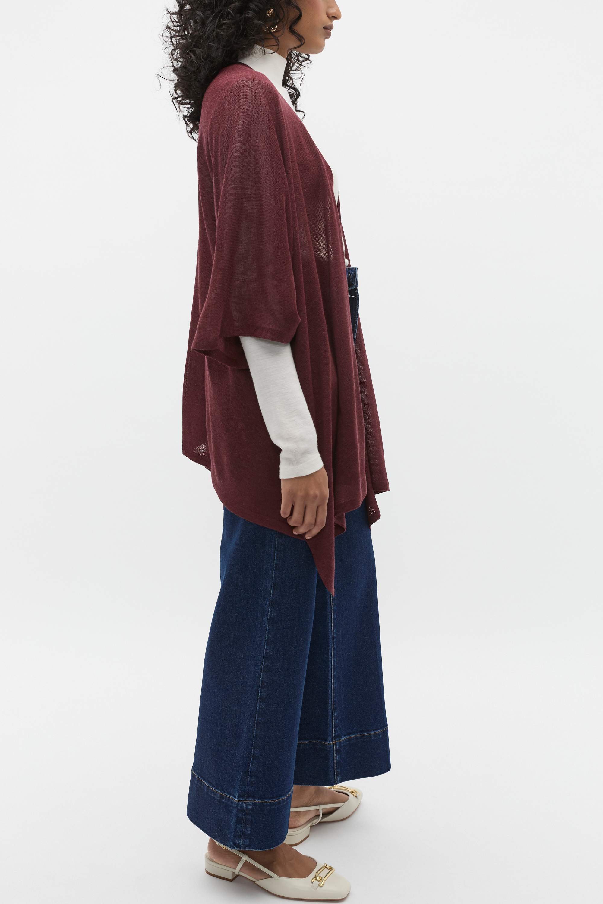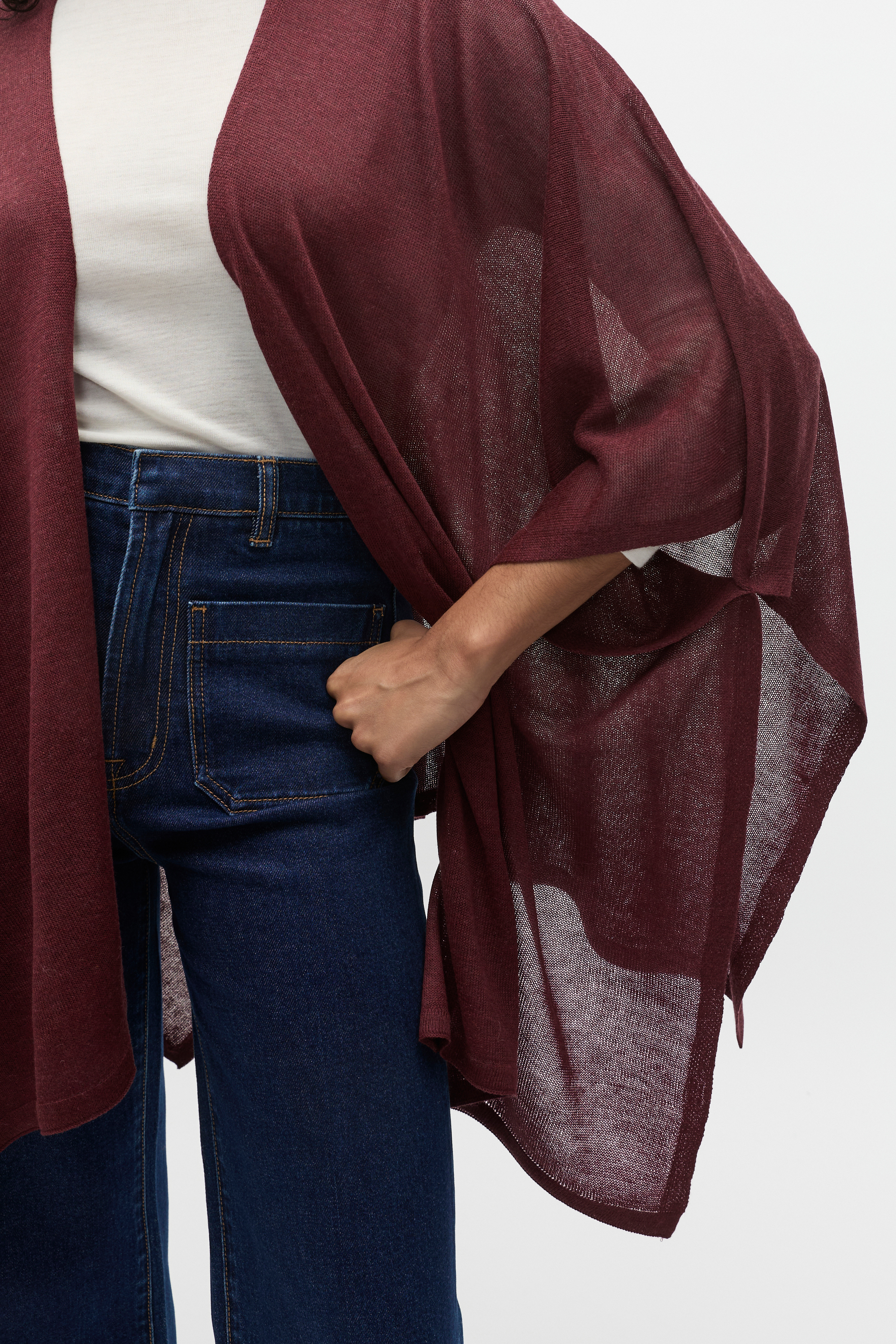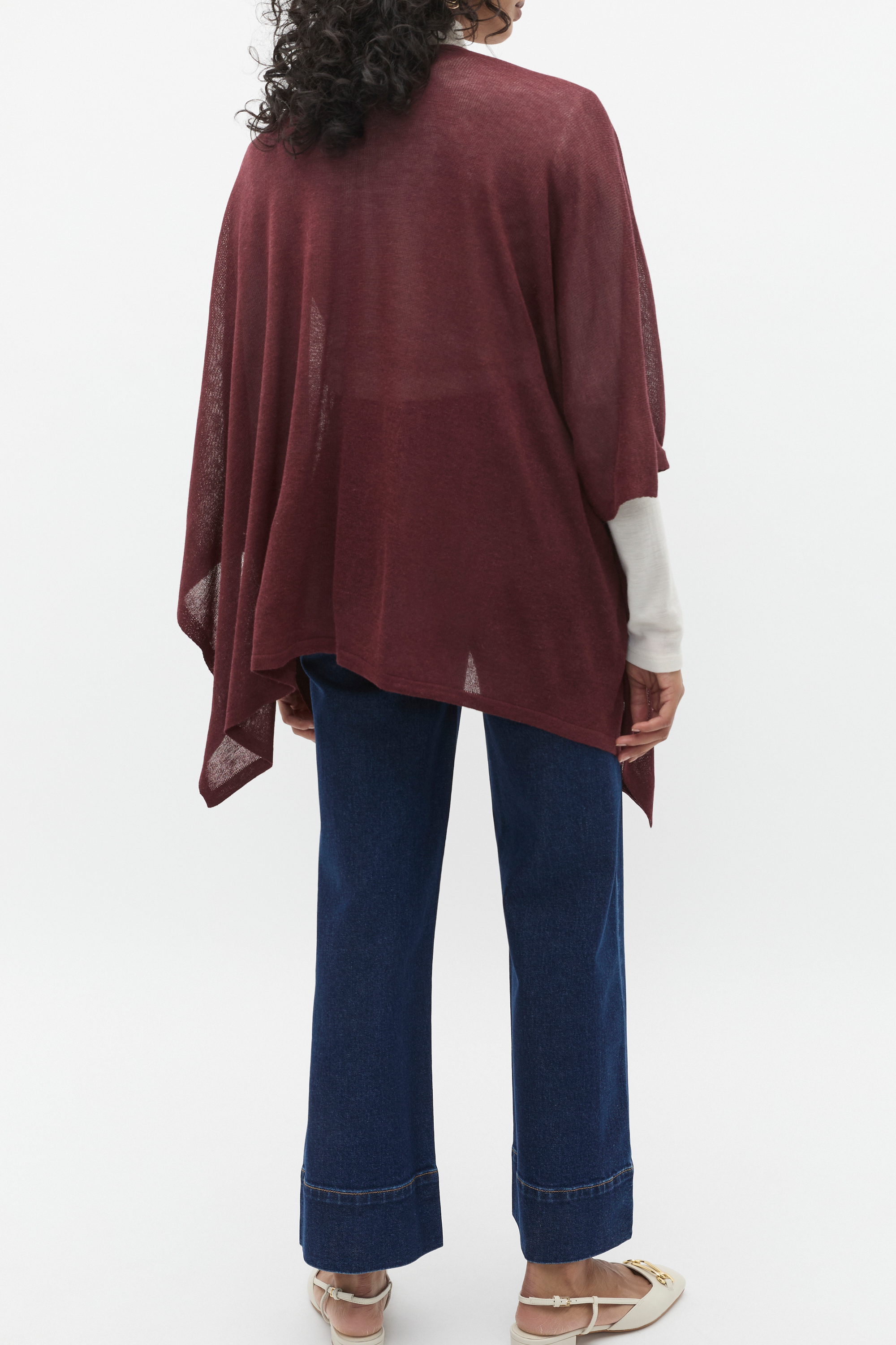 An ideal transeasonal layer, this poncho is an open style crafted from a fine knit blend with a soft finish.