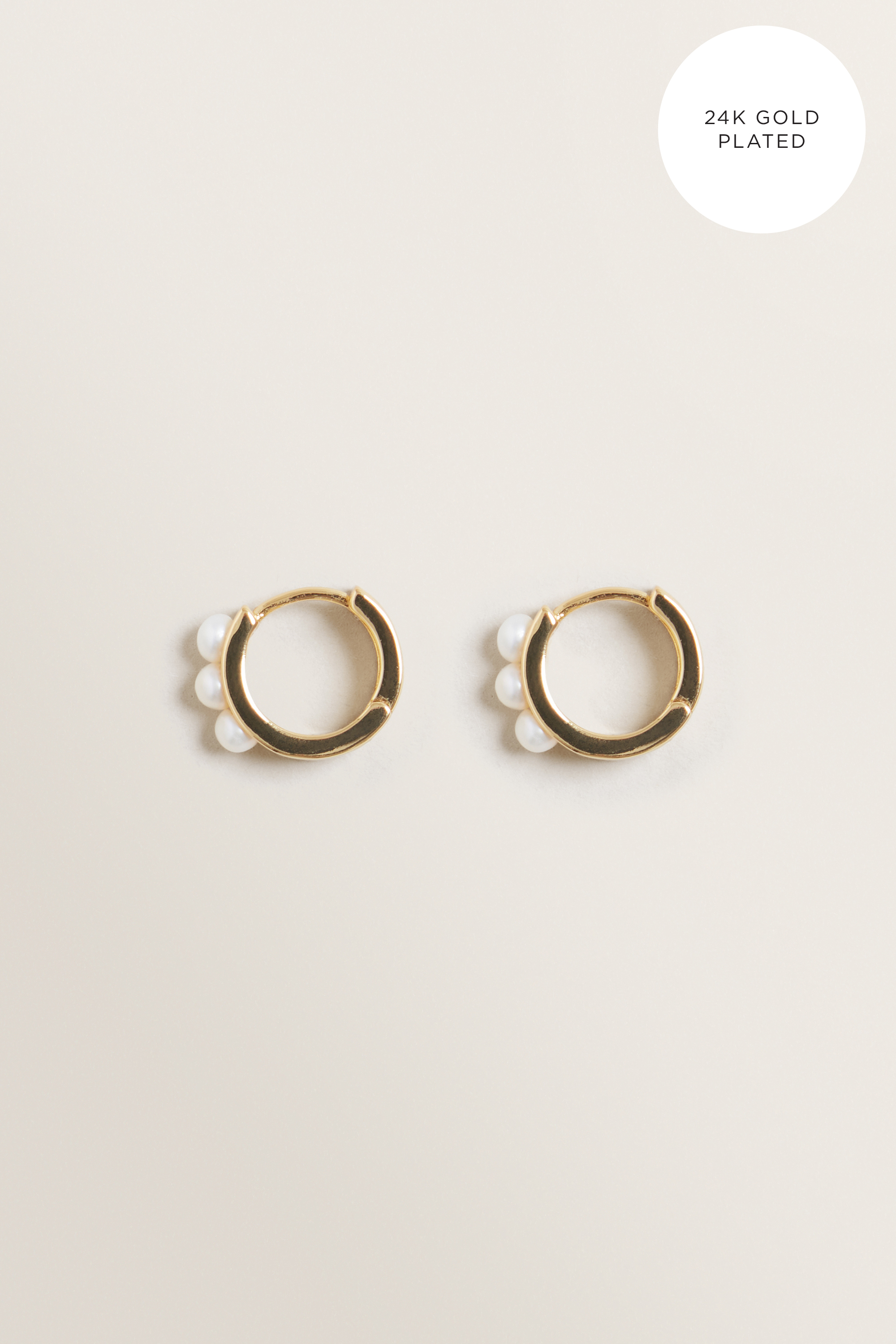 Introduce a delicate element to your Seed rotation, with this 24K plated collection. These Fine Pearl Huggie Hoops are detailed with stunning freshwater pearls, ear-hug hoops and latch closures.