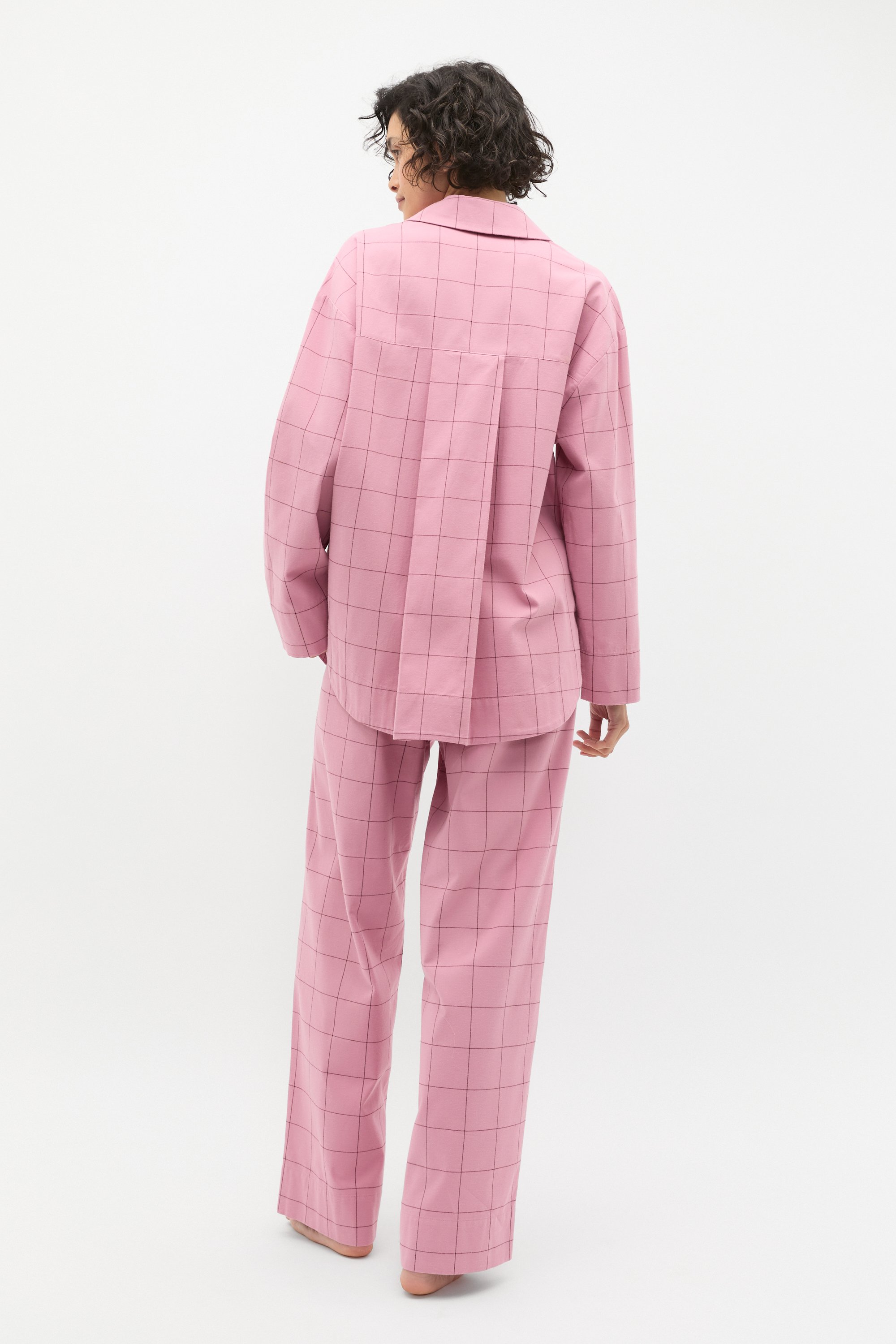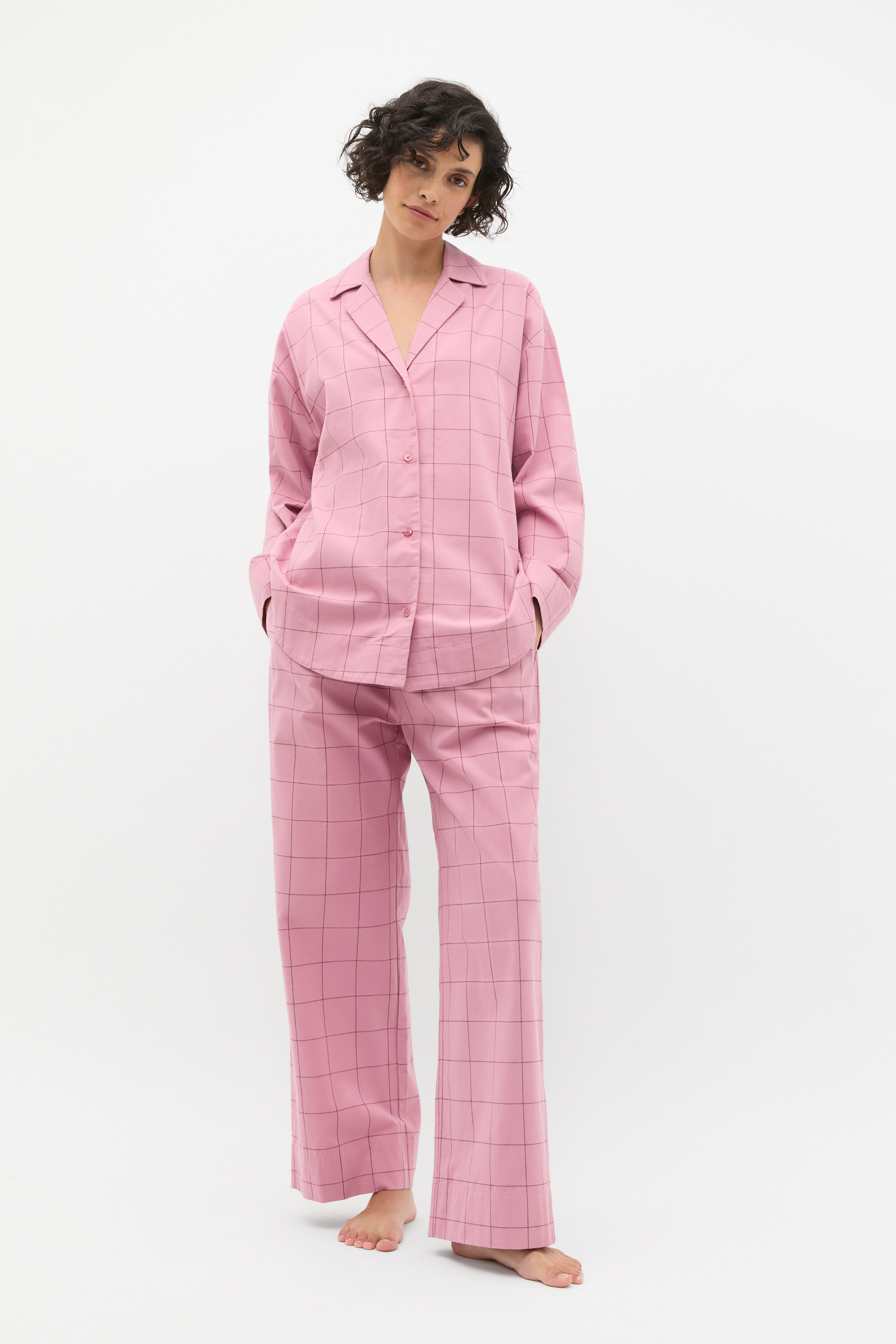 Crafted in premium cotton and finished in a cosy flannelette, these pyjamas are ready for a restful night's sleep. They feature a shirt-style top and wide leg pants with an elasticated waistband and drawstring.