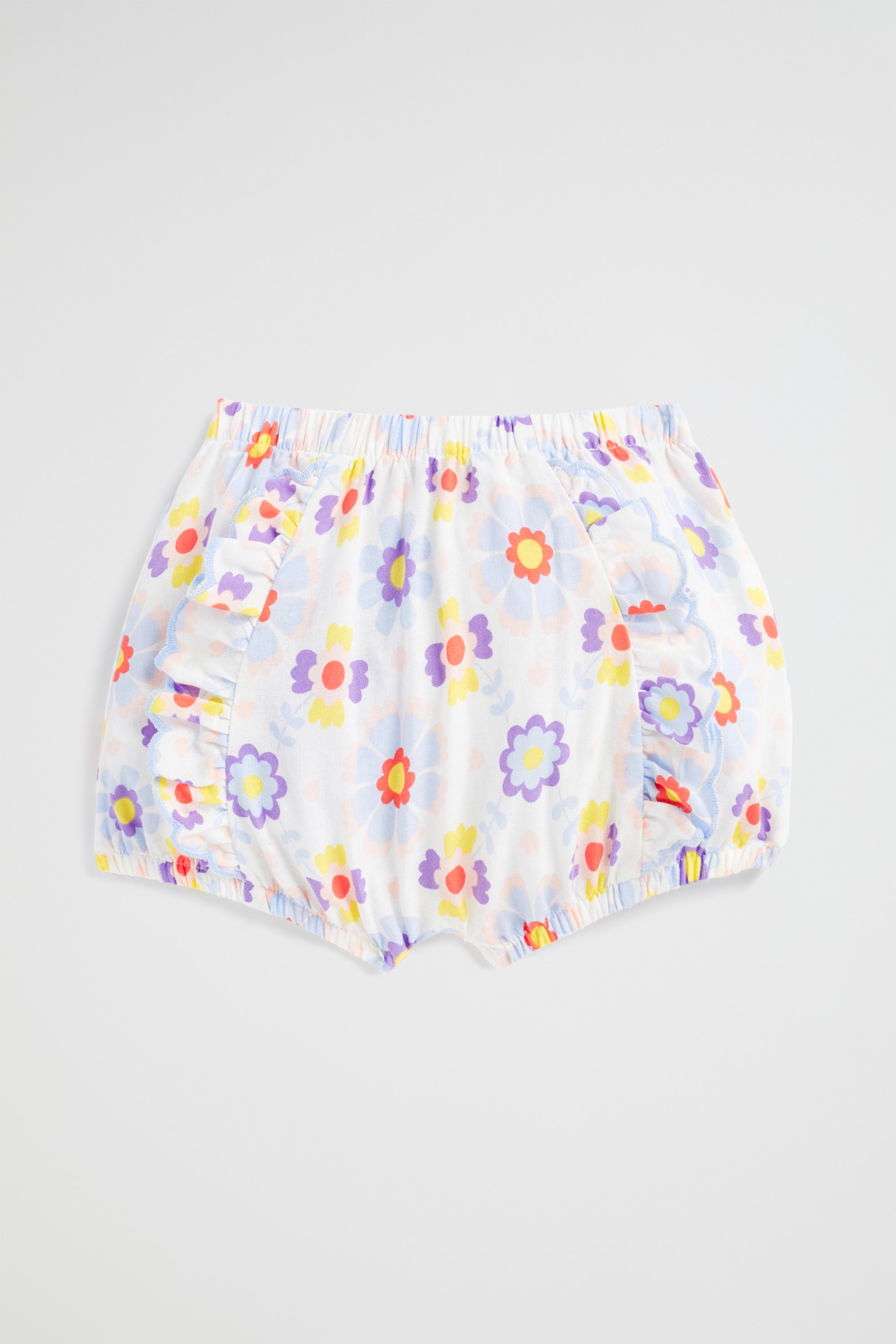 Crafted from a cotton and linen blend, these relaxed bloomers are covered in a yardage floral print finished with scalloped frills. The waistband and cuffs are gathered at the hem and elasticated for comfort. The bloomers have a roomy fit.