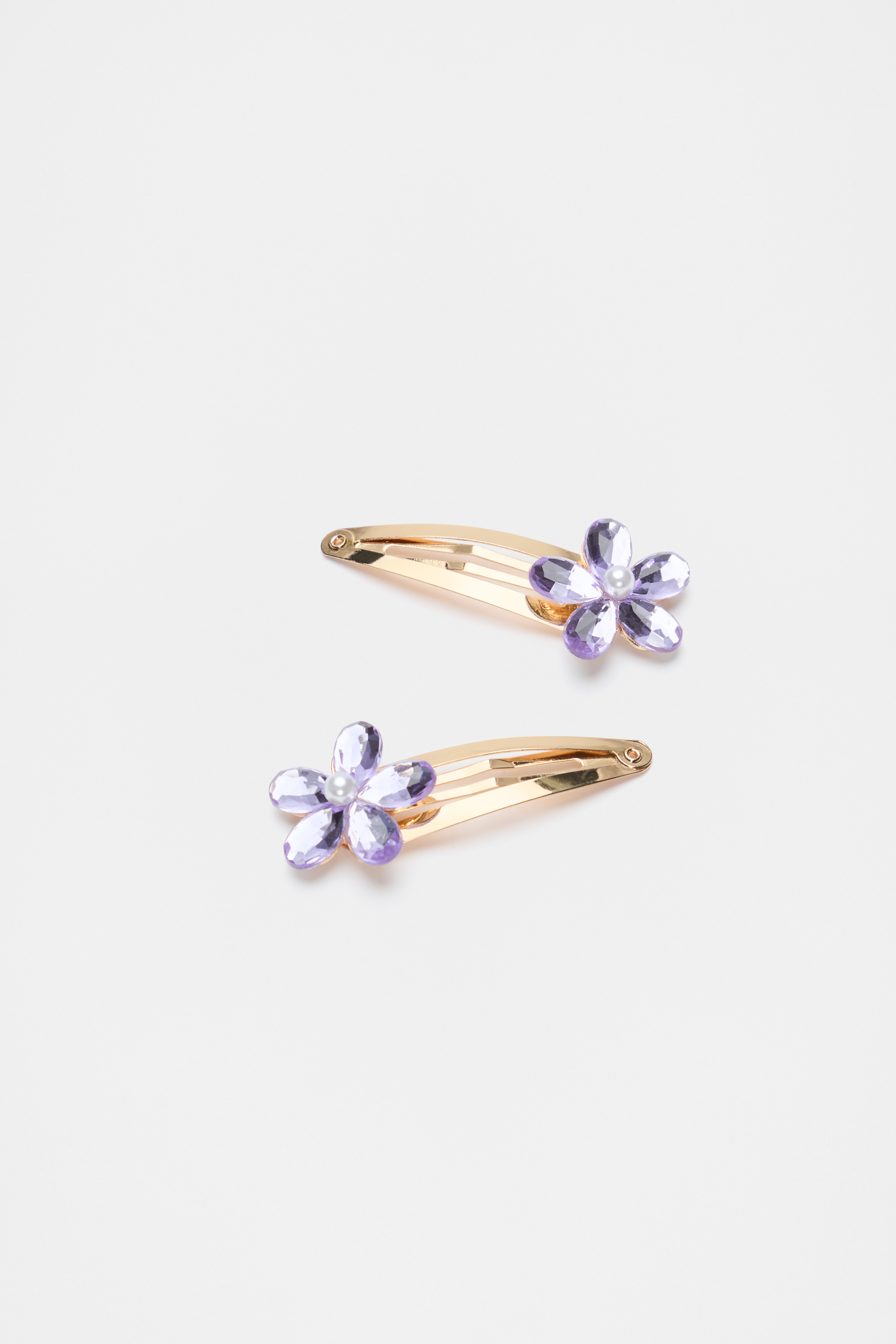 Shiny and fun, these hair snaps feature jewel flowers with pearly centres. This product is not a toy and is not suitable for children three years and under.