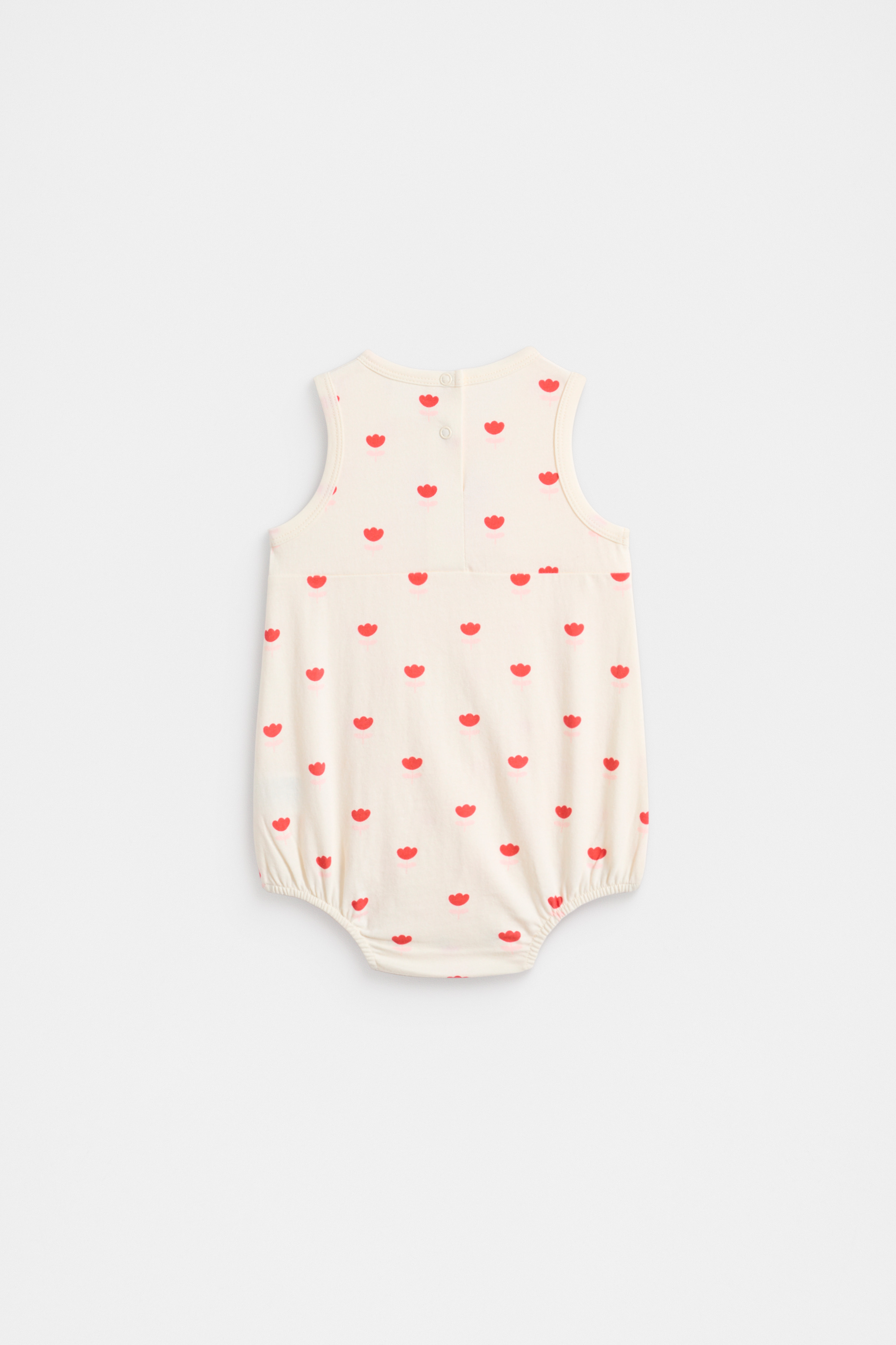 Lightweight, cute and perfect for summer, this little romper has the sweetest design of flowers. Crafted in premium cotton, it features a tank-style top with a round neck, elasticated leg openings and fastens at the back of the neck and at the gusset with snap buttons.