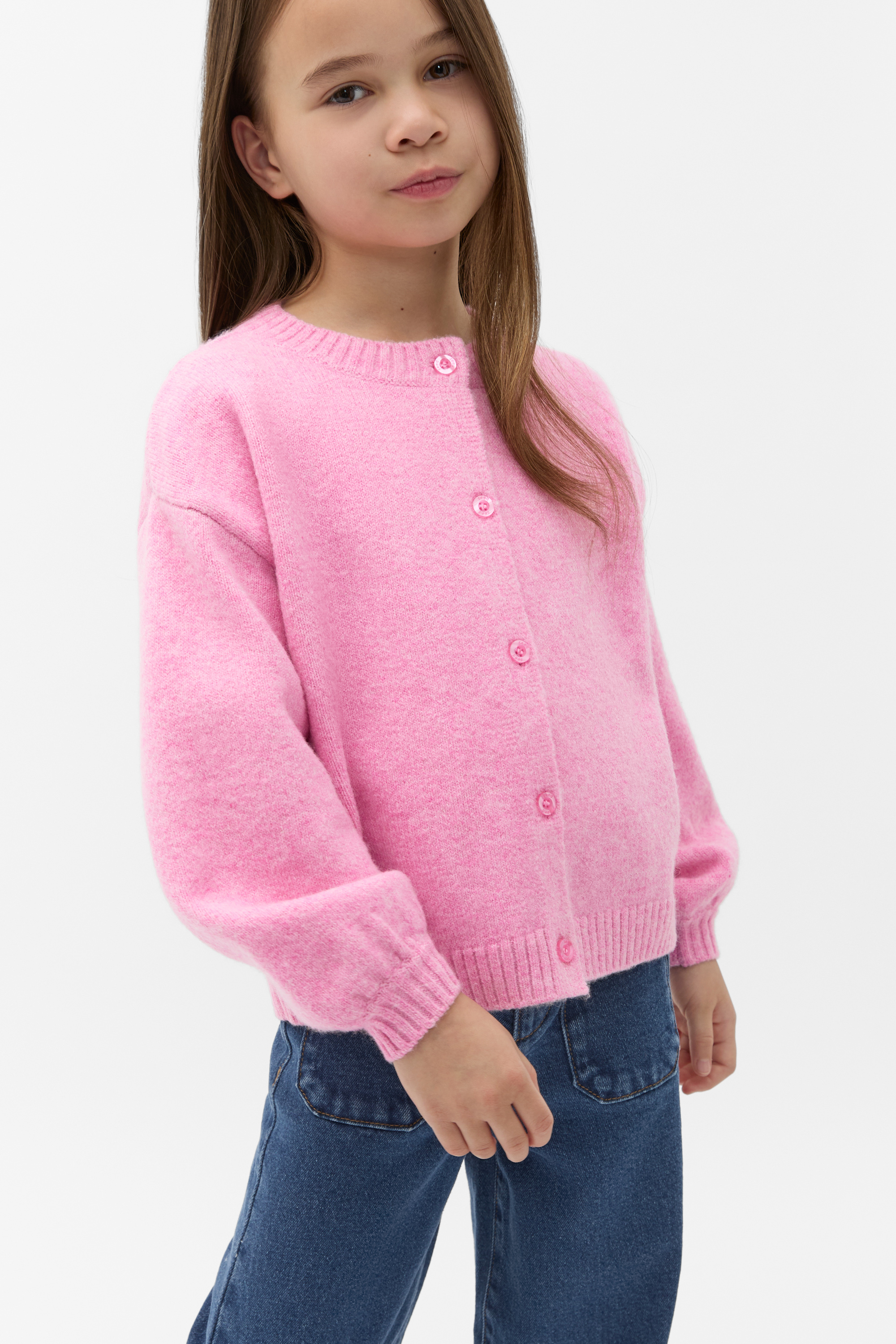 Pretty in pink with a soft fluffy finish, this cardigan is the sweetest style. Crafted in a soft blend, it features a round neck with a button through front and long sleeves with ribbed trims at the cuff.