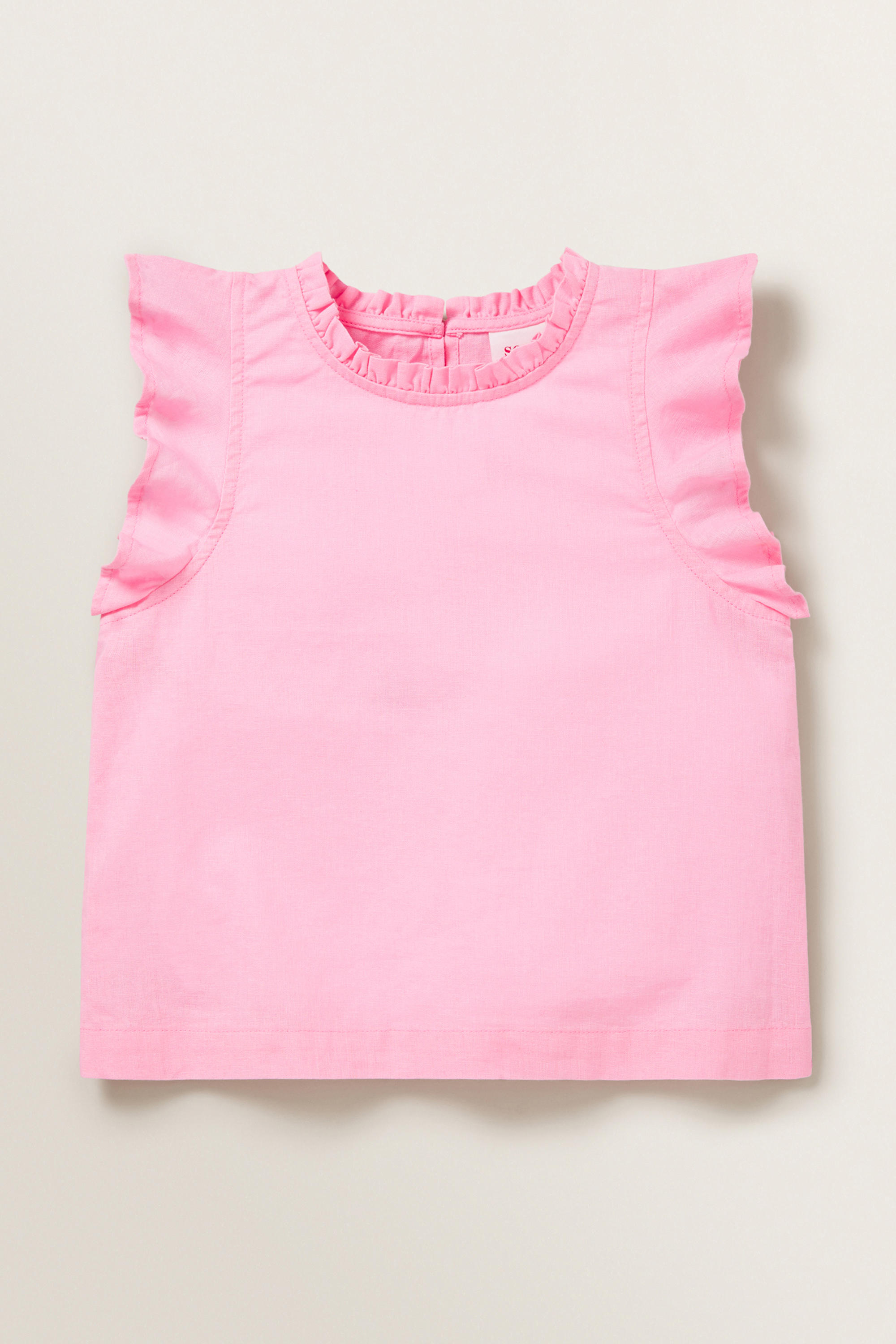 Ideal for summery picnics in the park, this Frill Sleeve Top is detailed with a high neckline with frill trims, cap frill sleeves and a boxy silhouette. Available in three seasonal colourways, your little one will love to mix and match these tops all season long. Made from a Linen/Cotton blend, this Frill Sleeve Top is available in sizes 2 to 10. For care instructions, check the label inside of the garment.