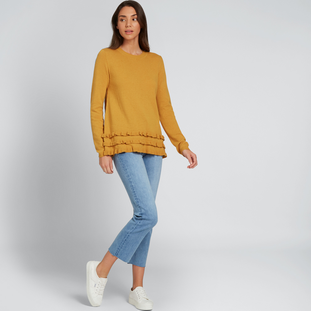Made from Viscose/Nylon/Cotton/Wool/Cashmere, this style is available in Golden Mustard and Black, and in sizes XXS-XL. We've paired Golden Mustard with the Casual Slim Leg Jean and Billie Flatform Sneaker. Black is paired with the Mid Rise Skinny Jean and Ollie Leather Sneaker. Our model wears a size XS and is 179cm tall. Please wash as per care instructions found on garment.