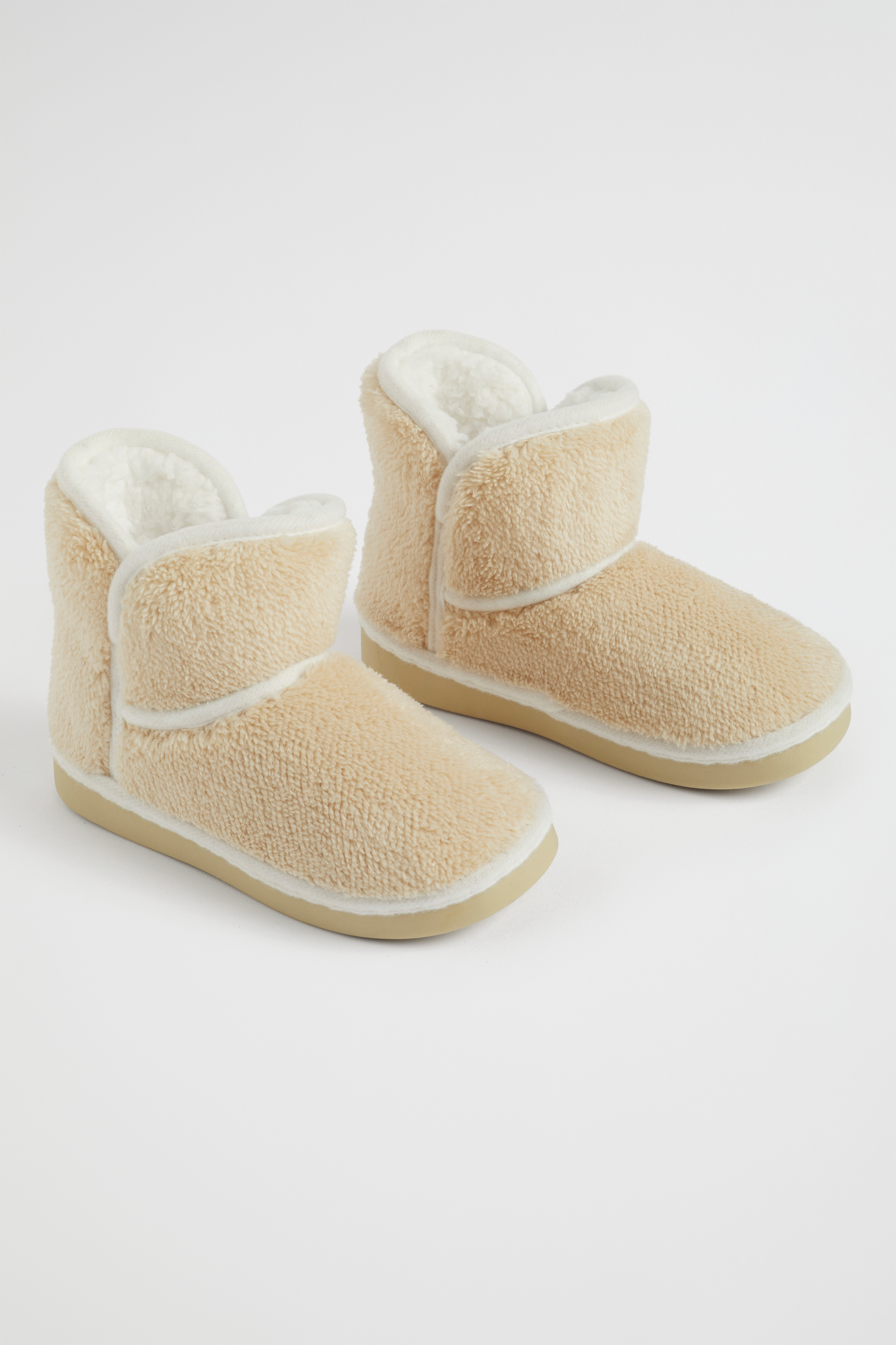 Perfect for days at home, these comfy house boots feature a round toe and a durable sole. In a plush faux fur with contrast trim, they are an everyday essential for the cooler months.