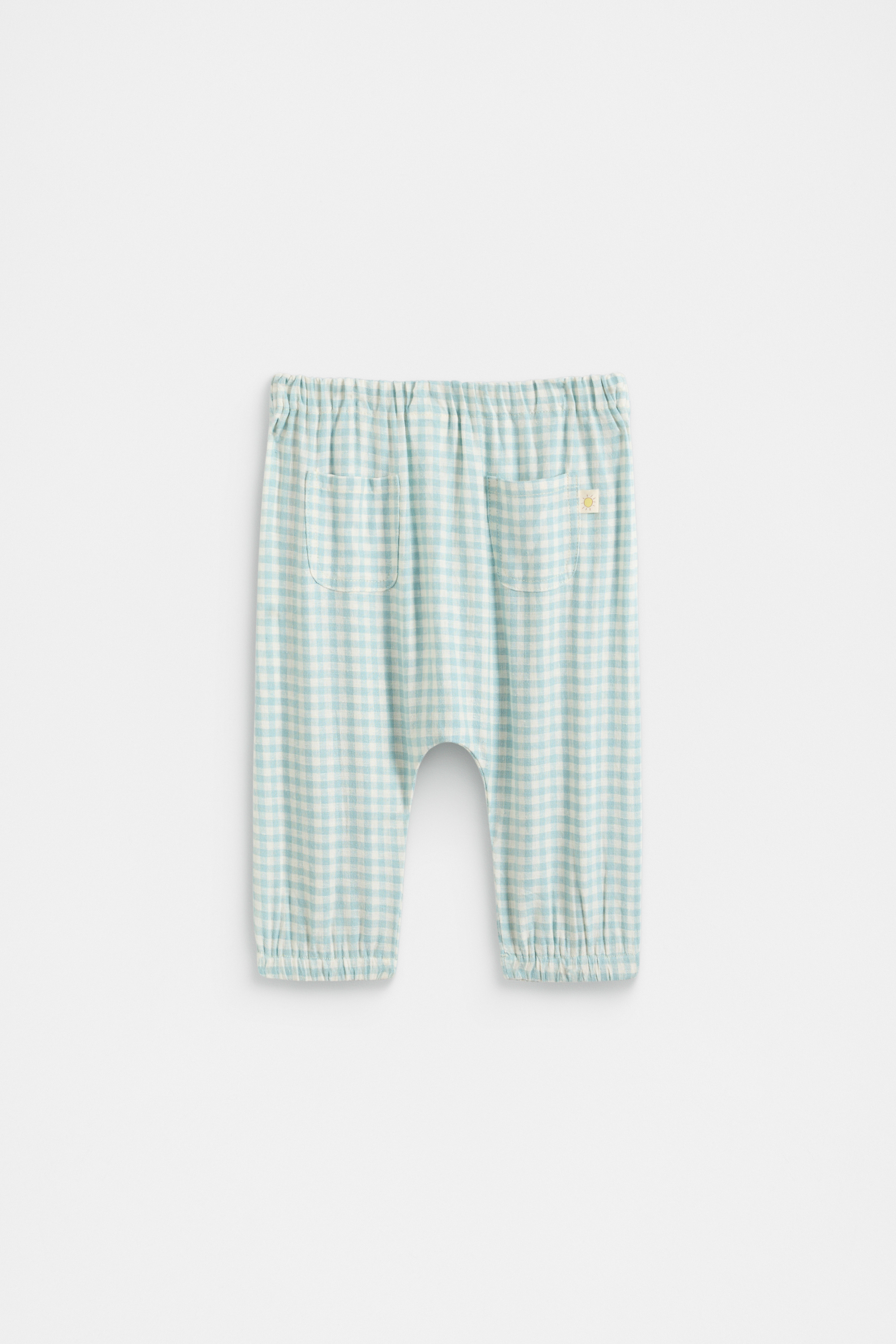 Adorably sweet, these gingham pants brighten their little wardrobe. Crafted in a lightweight blend containing linen, they feature an elasticated waistband, elasticated cuffs, and two back pockets. Pair with the matching gingham styles for the sweetest set, perfect for gifting.