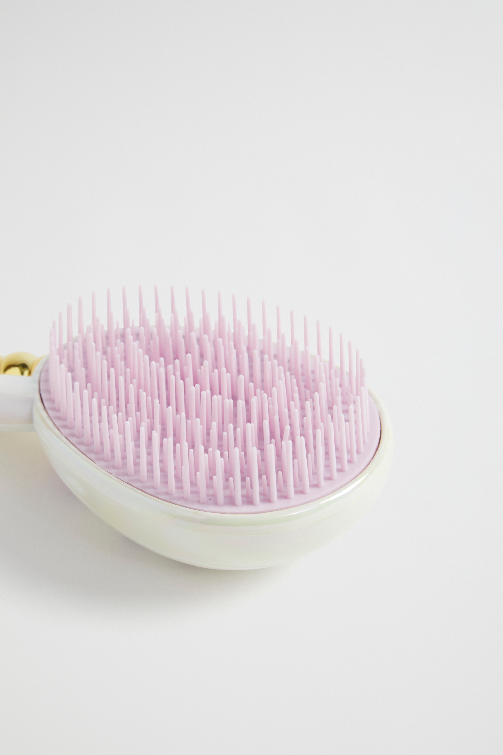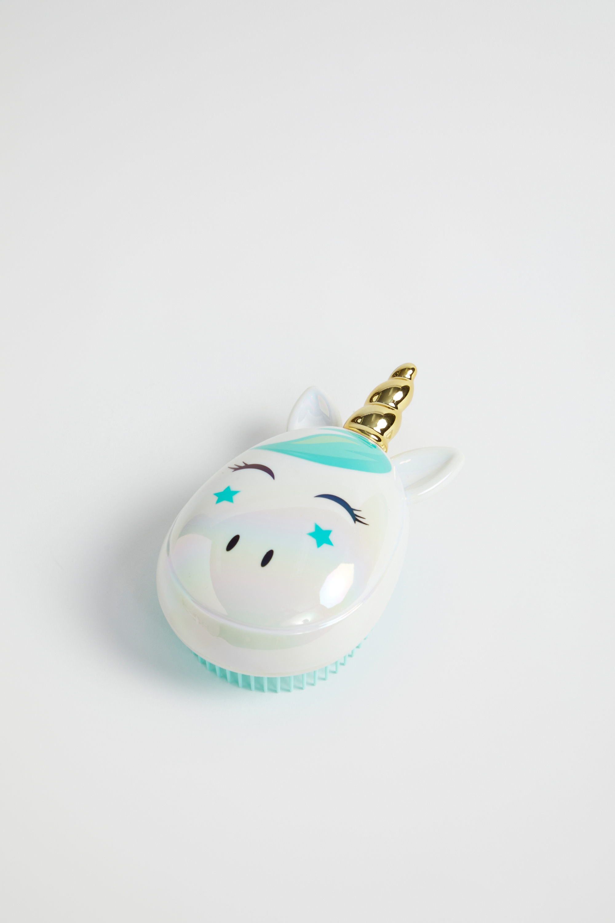 Softly detangle knotted hair with this gentle brush. The flexible bristles smooth out snagged hair, and the brush is shaped like a shiny unicorn complete with a gold horn. This brush is not a toy and is not suitable for children three years and under.