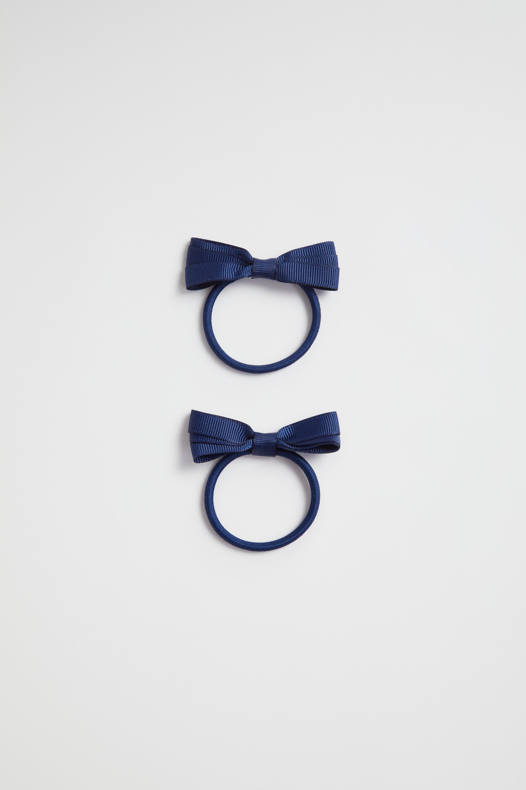 Add some colour to any outfit with these hair elastics, featuring grosgrain bows in matching colours. These elastics come in a handy set of two. This product is not a toy and is not suitable for children three years and under.