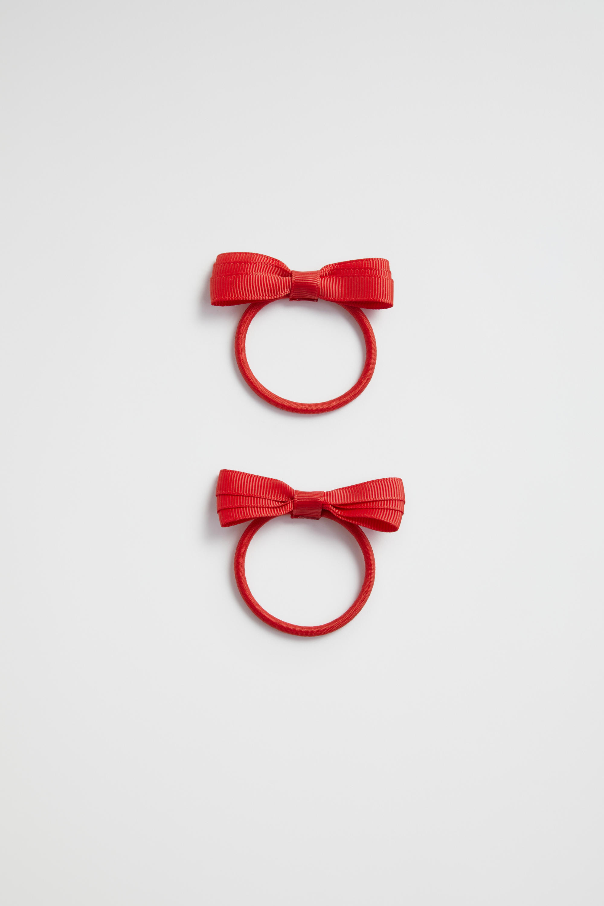 Add some colour to any outfit with these hair elastics, featuring grosgrain bows in matching colours. These elastics come in a handy set of two. This product is not a toy and is not suitable for children three years and under.