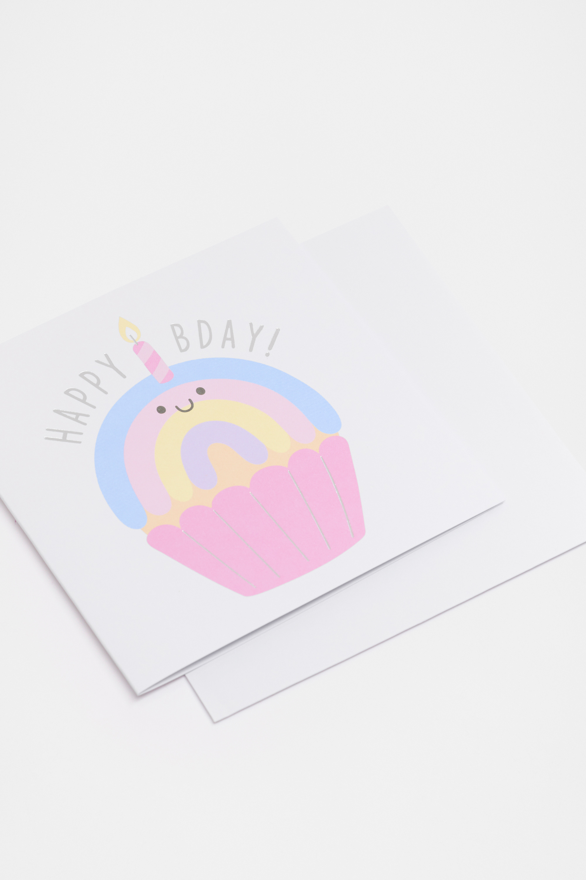 Happy Bday Rainbow Cupcake Card  Multi  hi-res Happy Bday Rainbow Cupcake Card  Multi  hi-res