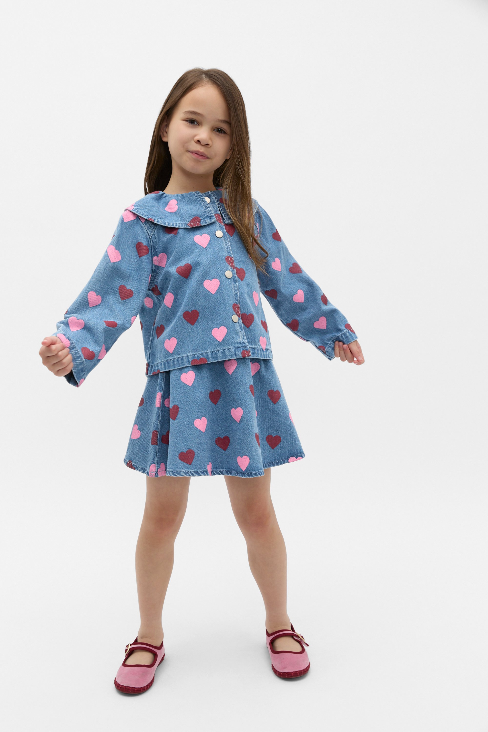 The prettiest design for your little fashionista, this skirt is perfect for weekends and birthday parties. Crafted in premium cotton denim, it features an elasticated waistband and a two-tone heart print. Style with the matching jacket or accessories for an adorable matching moment, or for the perfect gift.