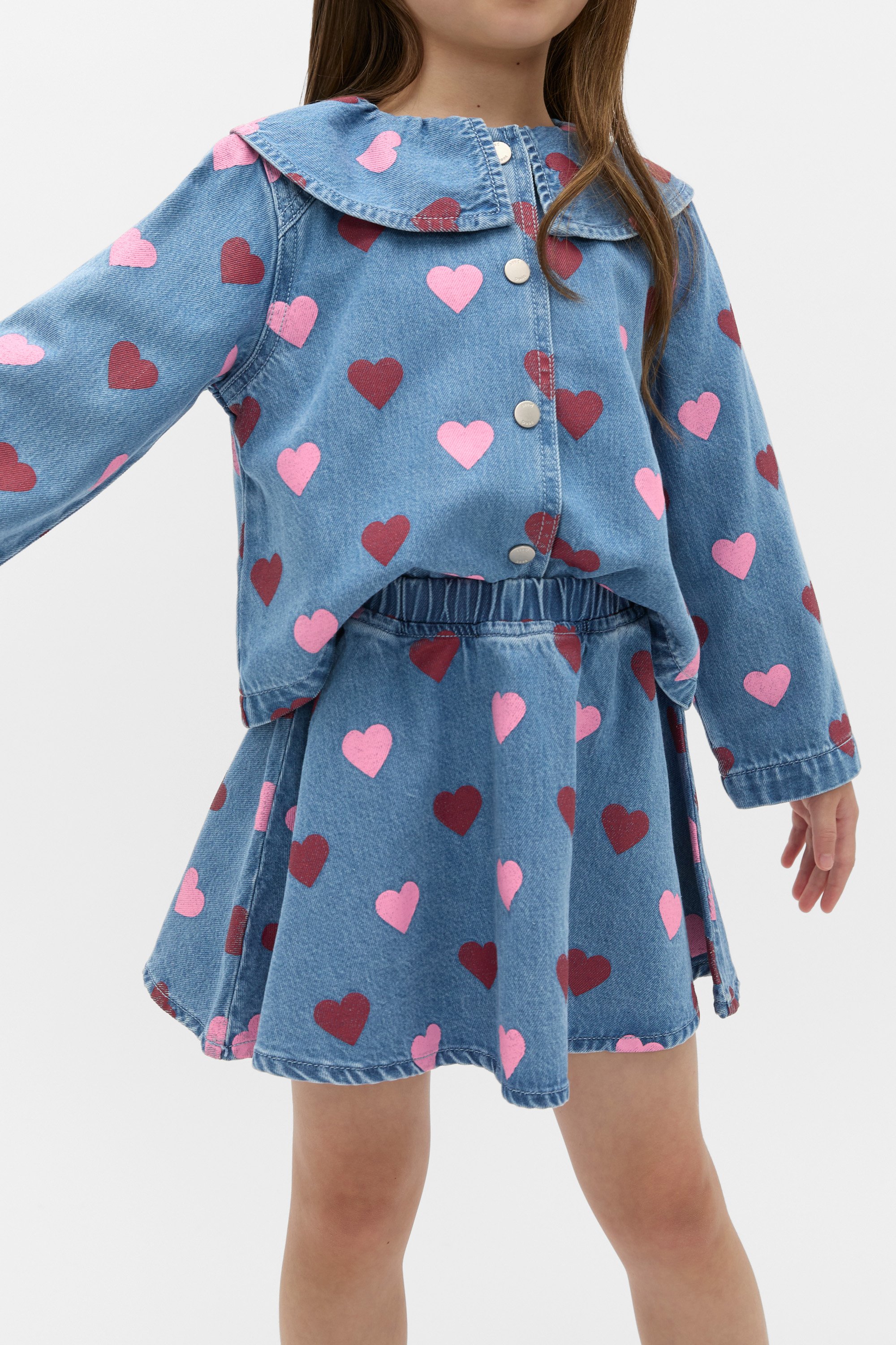 The prettiest design for your little fashionista, this skirt is perfect for weekends and birthday parties. Crafted in premium cotton denim, it features an elasticated waistband and a two-tone heart print. Style with the matching jacket or accessories for an adorable matching moment, or for the perfect gift.