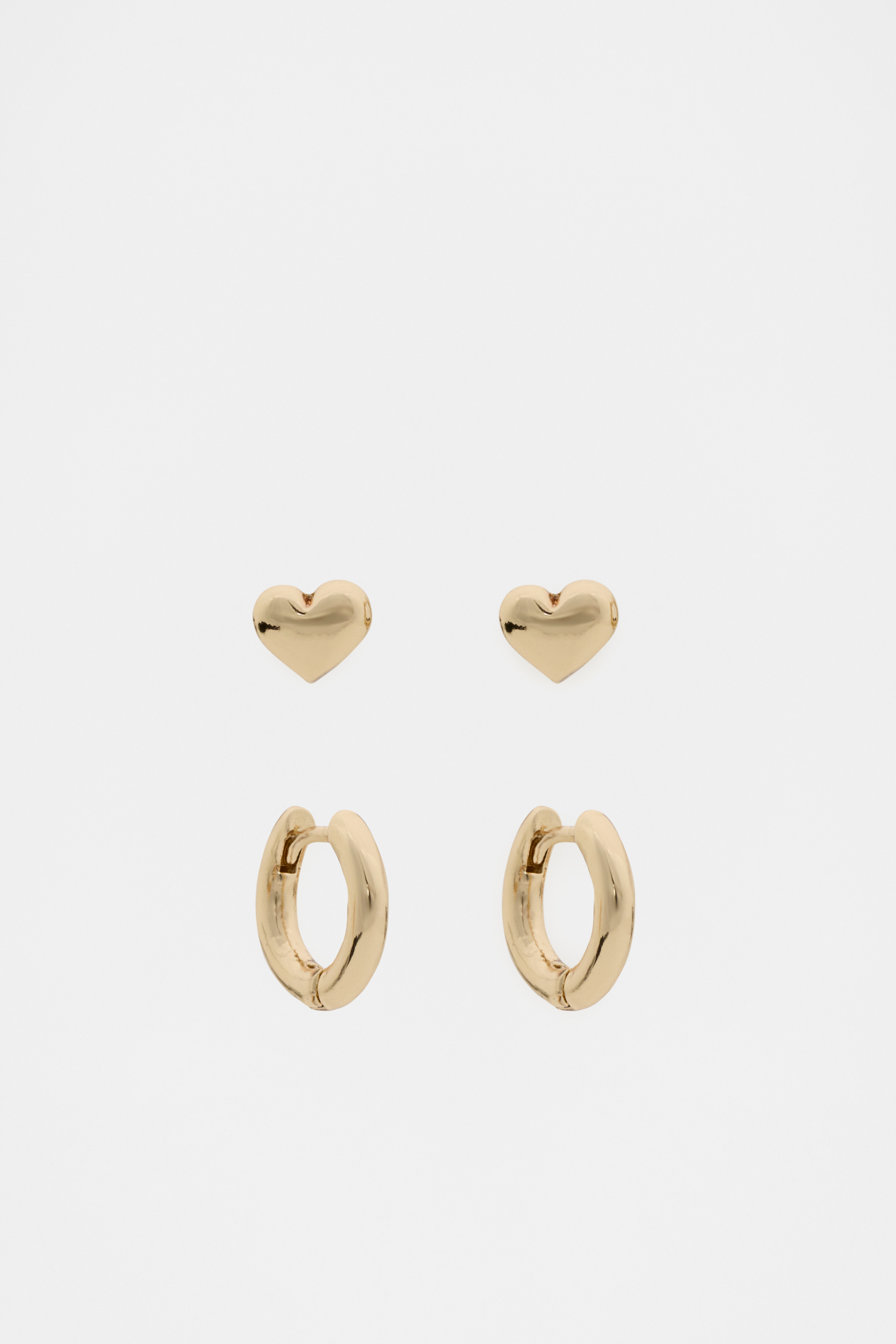 Elegant and understated, this earring set is ready for your everyday styling. Perfect to be worn together, the set features a simple stud with a heart design as well as a set of small hoops.