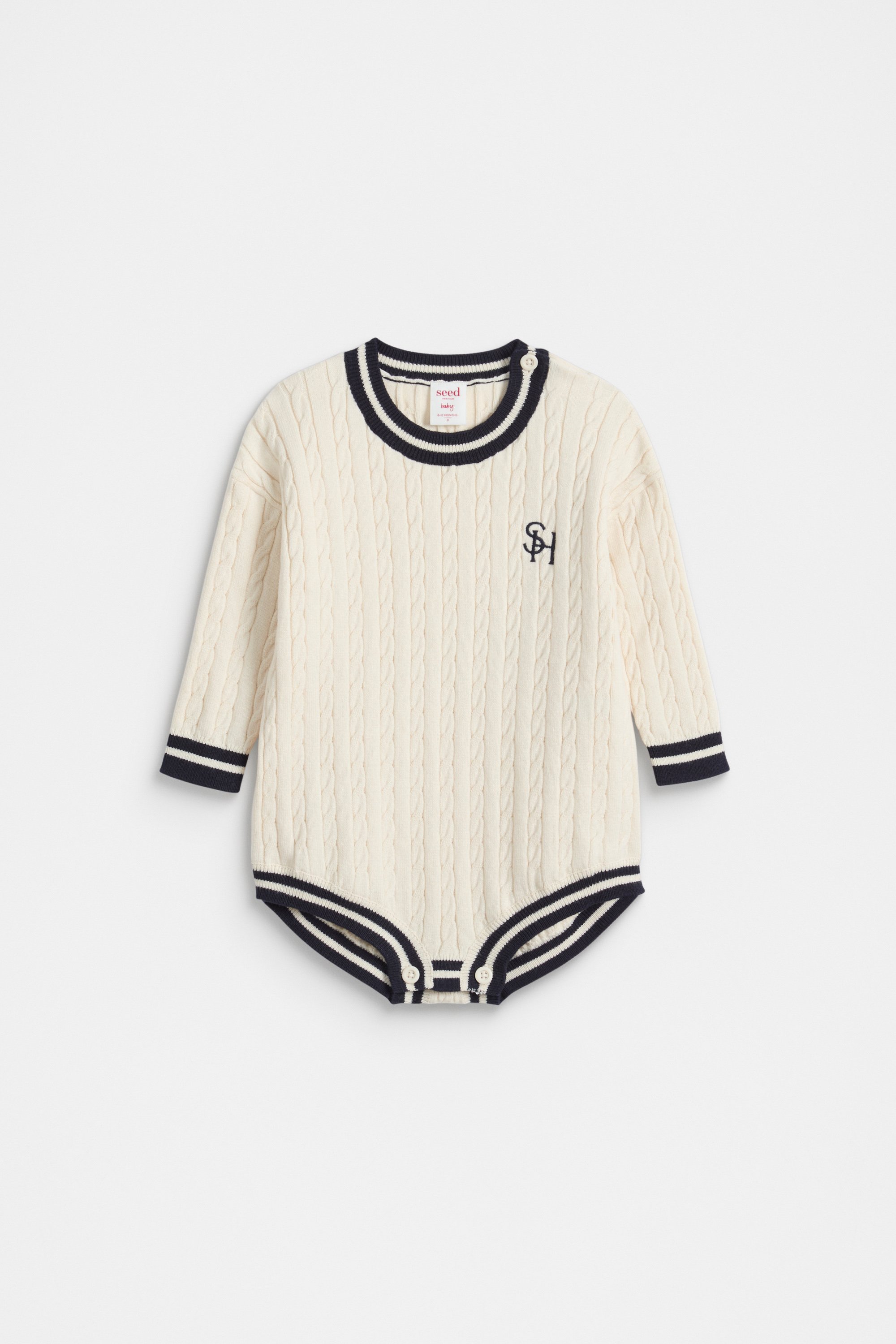 Heritage Cable Knit Onesie  Coconut Cream  hi-res Heritage Cable Knit Onesie  Coconut Cream  hi-res