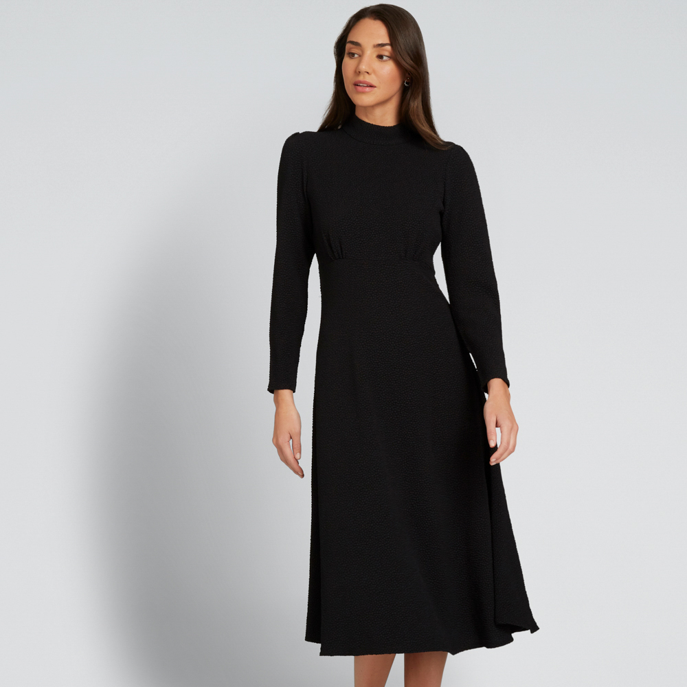 Made from Polyester/Elastane, this style is available in Black and in sizes 6-14. We've styled this with the Animal Coat, Teardrop Earrings, and Gemma Heel. Our model wears a size 8 and is 179cm tall. Please wash as per care instructions found on garment.