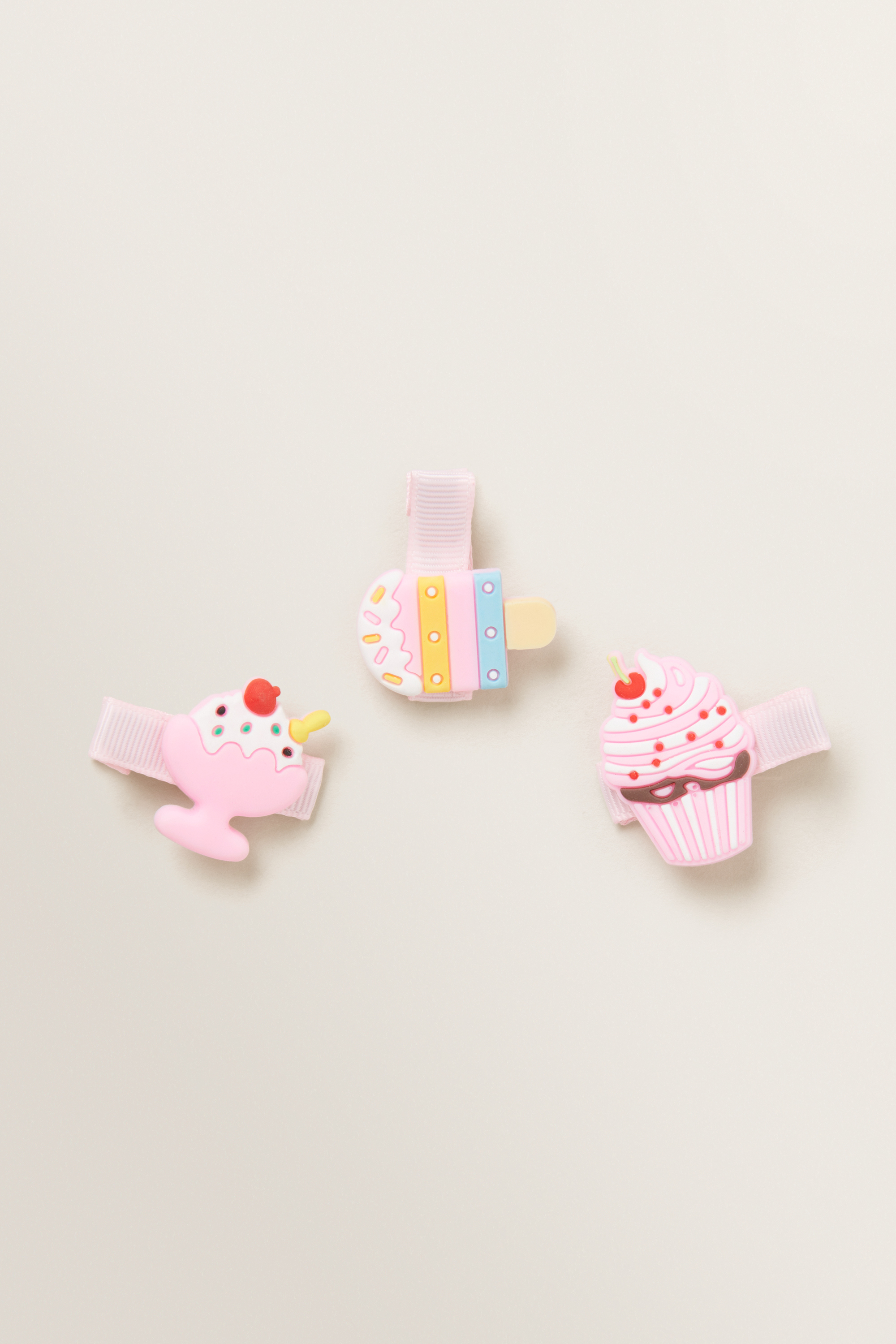 This Ice Cream Duck Clip Trio features a grosgrain ribbon base, icecream motif and secure closure.